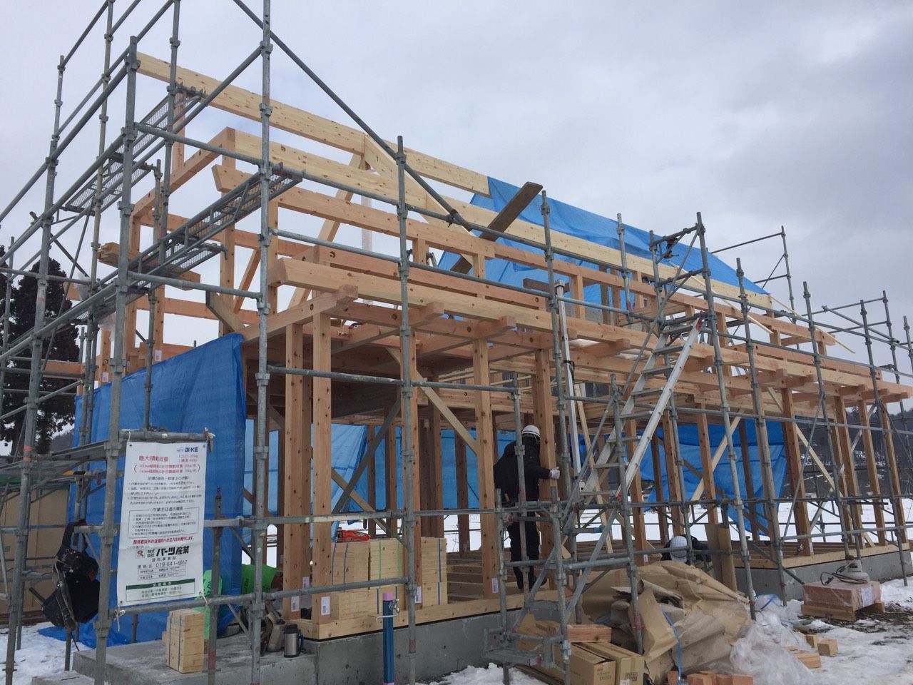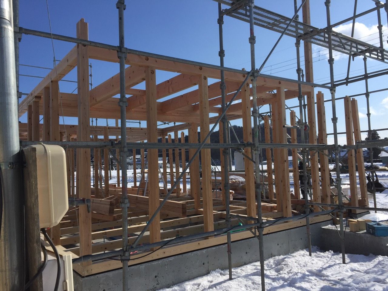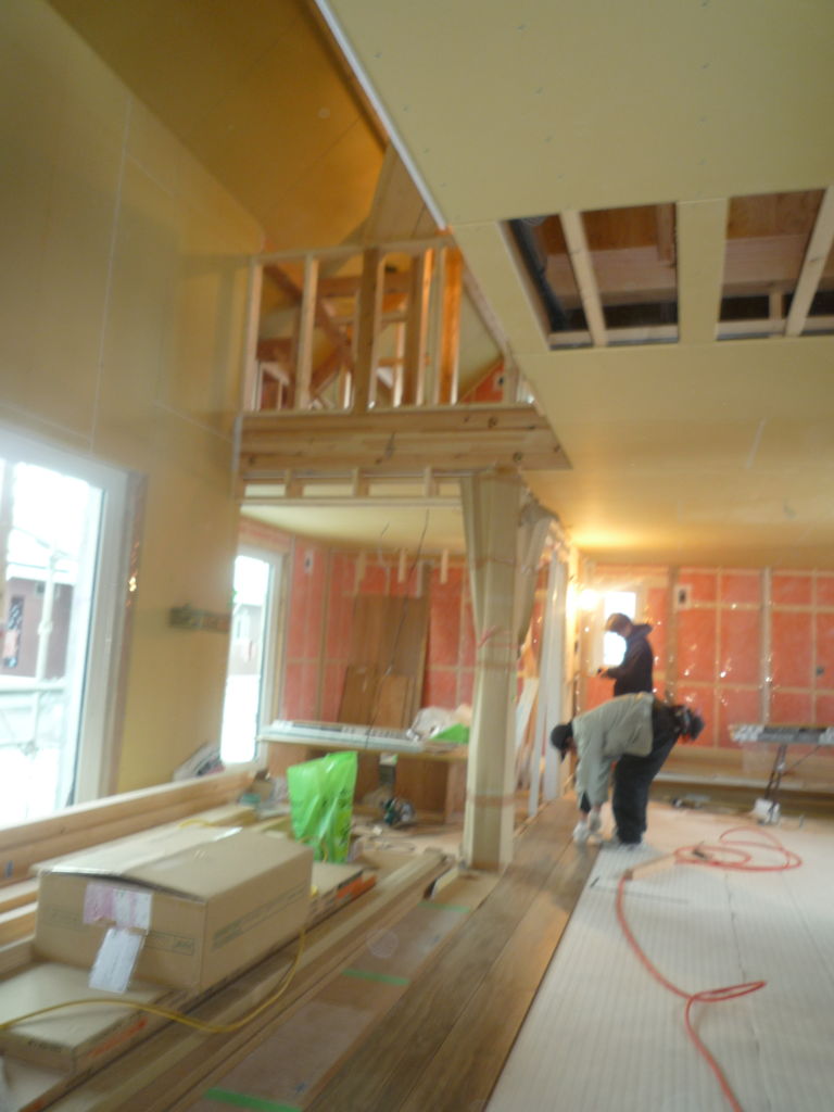 窓サッシはトリプルガラスを採用、屋根には太陽光パネル、高気密高断・・とまさにこれから必要とされてくる家です。室内も使いやすい間取りになっており、完成が楽しみです