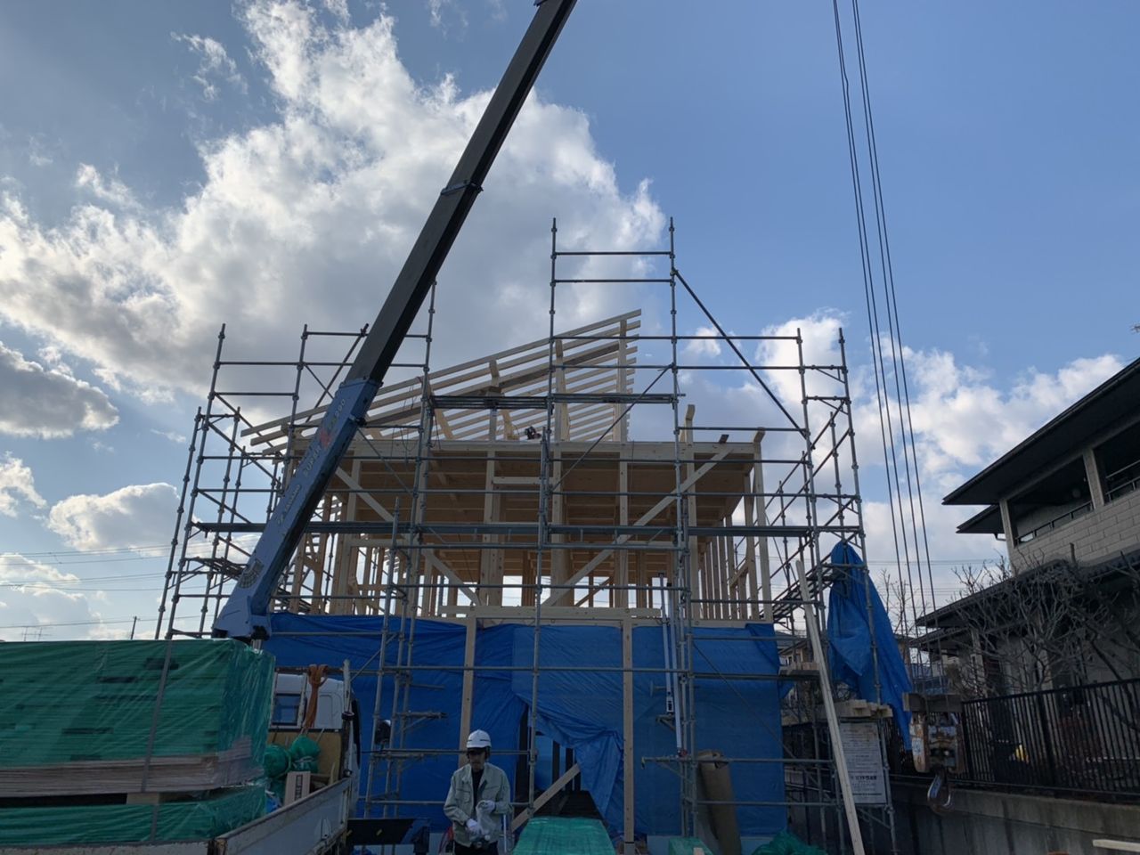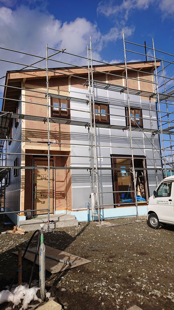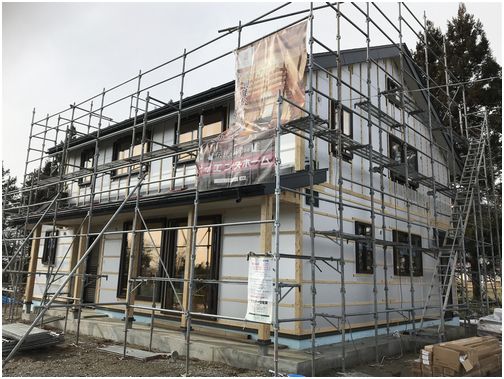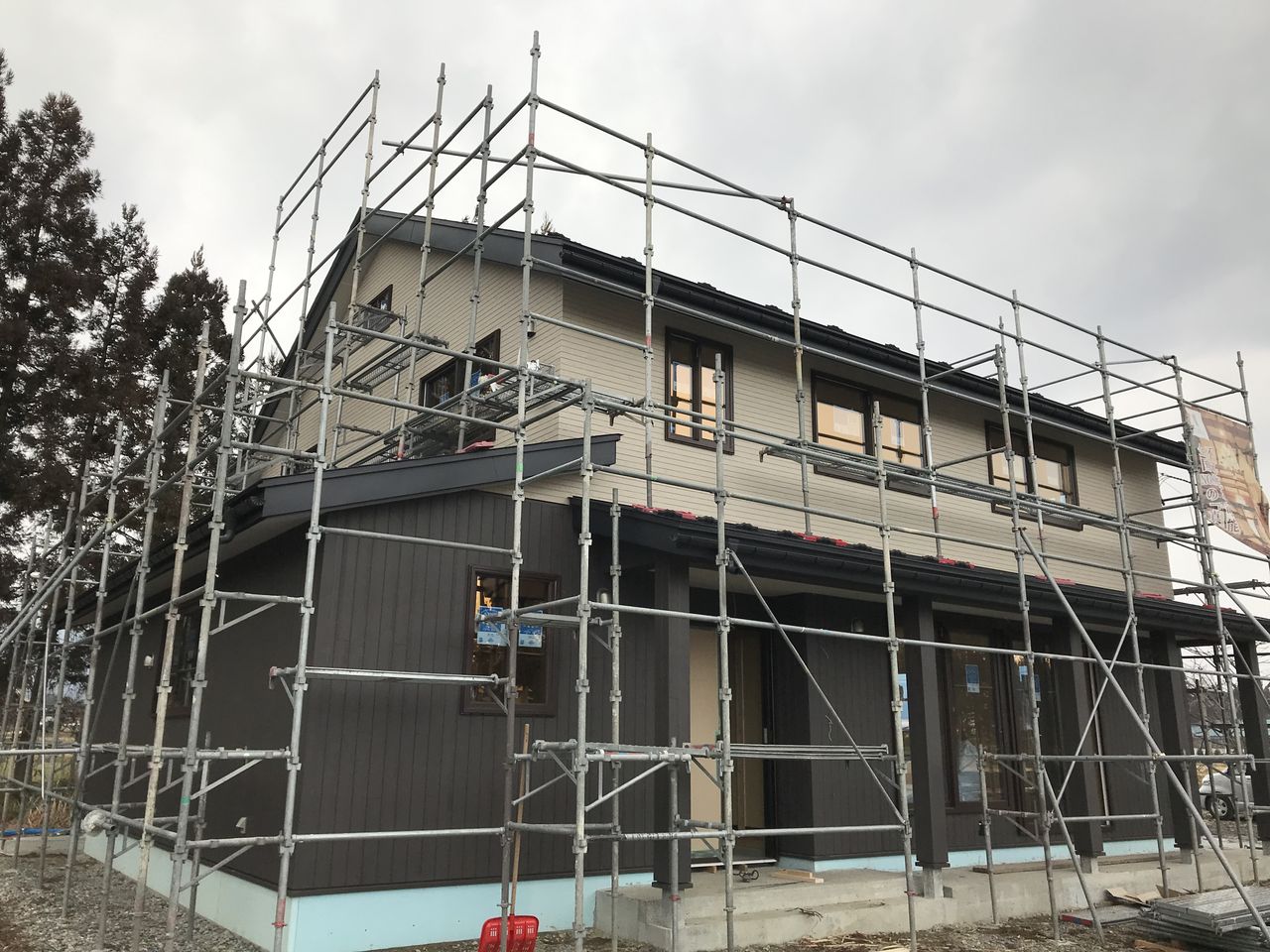 外では、外壁を張り終わりました。落ち着いた素敵な雰囲気ですね
