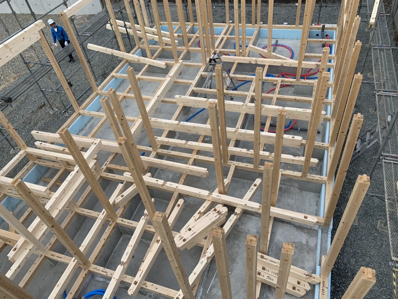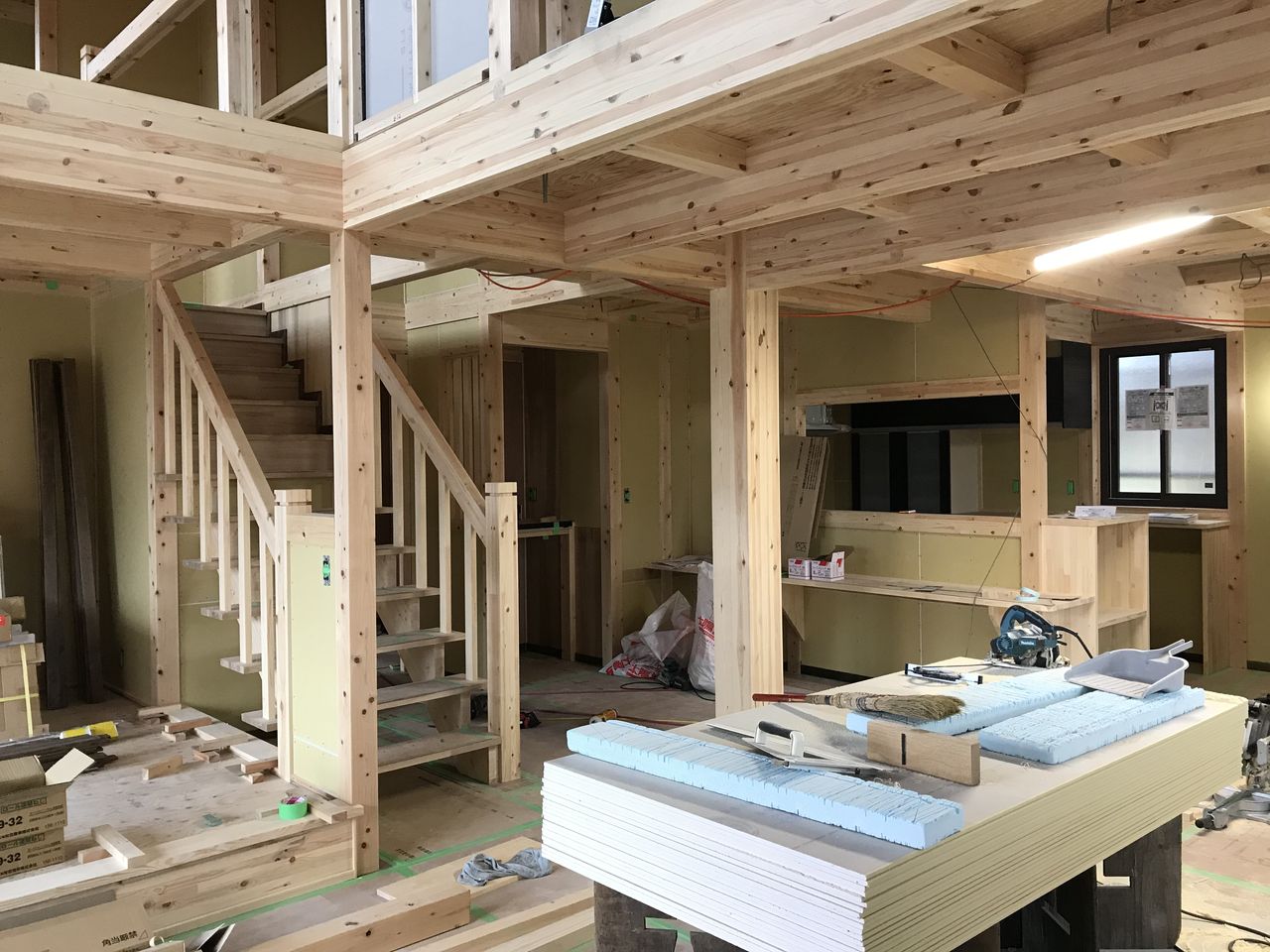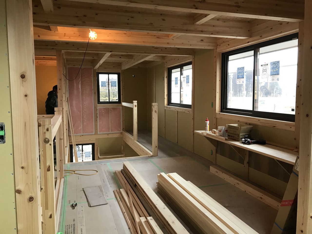 中では、石膏ボードを張り、大工さんの造作が進んでいます。