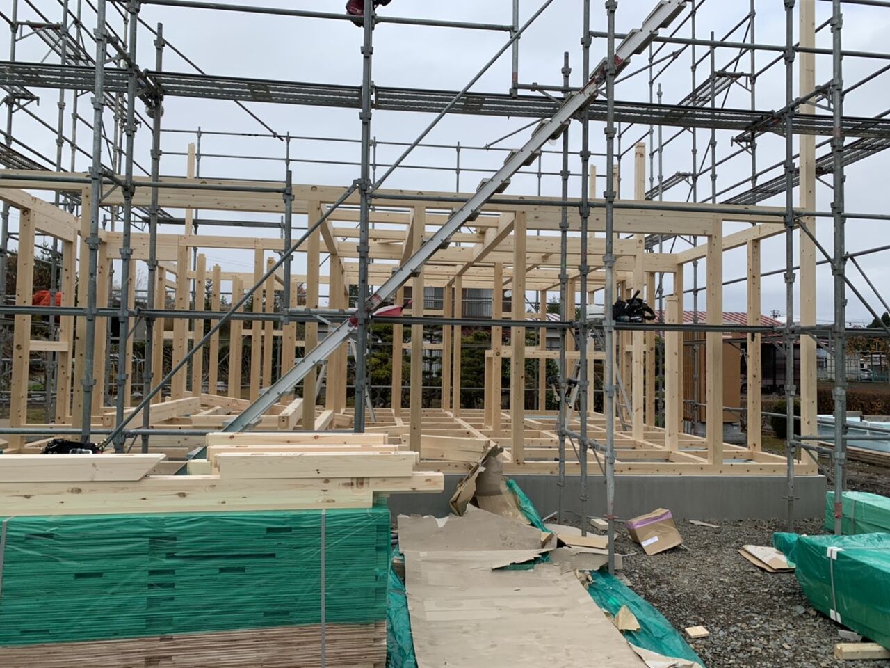 2020年11月27日 リフォーム工事もやっています 内壁、天井、床を解体して新しく作っています 床、壁の断熱も新しく入れ替えてます 外壁も新しく張り替えますので、大工さん下地を作っている ところです。 このように新築工事だけではなく、リフォーム工事も行っています