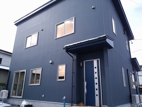 2016年11月25日 ◆◆樹里 上小舟渡 S様邸 ◆◆ 花巻 上小舟渡現場です。窓がおさまり、遮熱タイベックシートの施工中です。玄関ドアも取付終わりました。きれいなブルーをお選びになりました完成が待ち遠しいですね