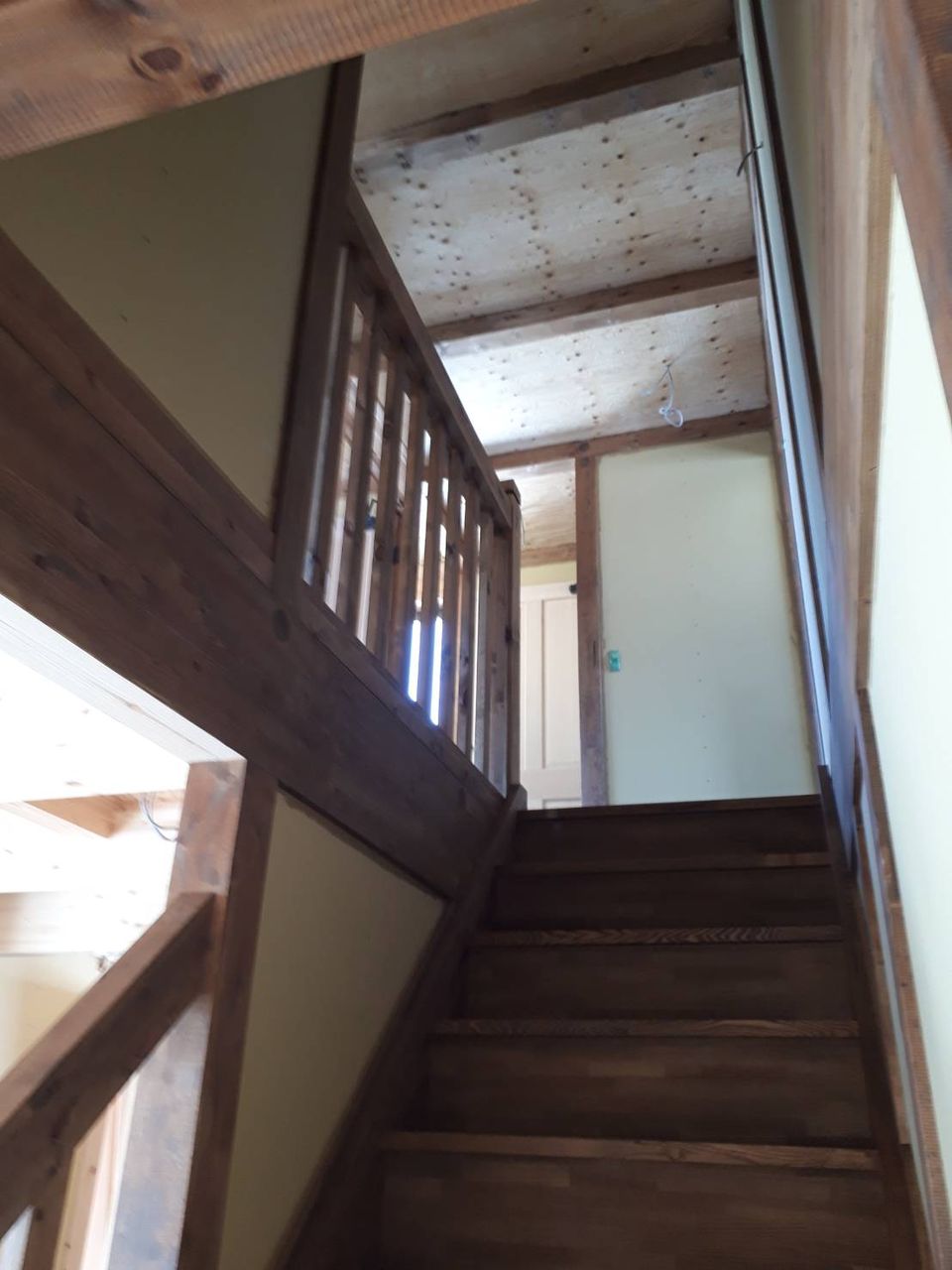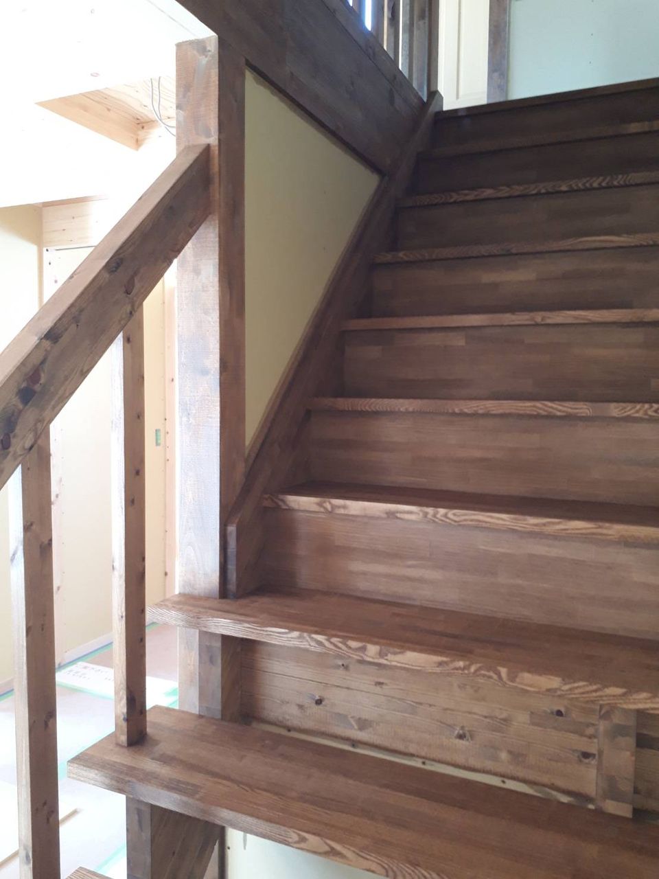 2018年03月01日 サイエンスホーム 中北万丁目 S様邸 大工さんの造作工事が終わり、内部の木の塗装中ですこのお家は、自然塗料ワトコオイルの『ダークウォールナット』を塗りました落ち着いた良い雰囲気になっていますね