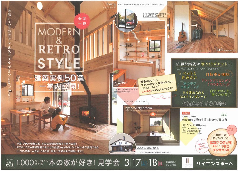 2018年03月09日 木の家が好き!見学会のご案内 サイエンスホーム完成見学会日時 3月17日 (土) ・ 18 (日) 10時~16時まで場所 花巻市中北万丁目645-48今回の見学会の見どころ人が集まる広い玄関ホール2階のスペースを有効に活用した間取り大工さんが造ったテーブルで勉強する子供部屋など。。。その他にもたくさん今回、2日間限りの公開となっておりますスタッフ一同、みなさまのご来場をお待ちしております♪