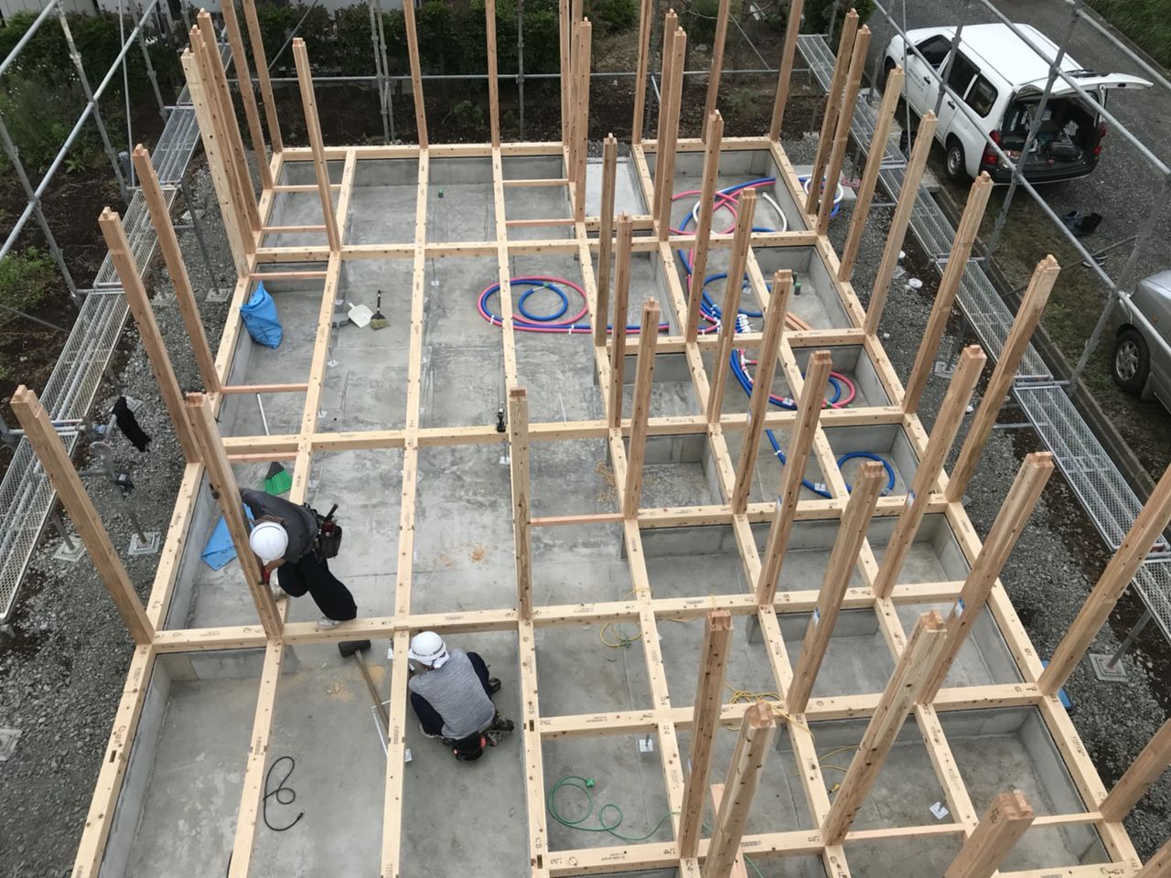2018年09月03日 吹抜けをパチリ 大工さんの内部造作が進行中です。LDKから見上げた吹抜けをパチリリビングの窓からは日の光が差し込んで明るく、良い風が入って気持ちいいですウッドデッキがつくのが楽しみですね