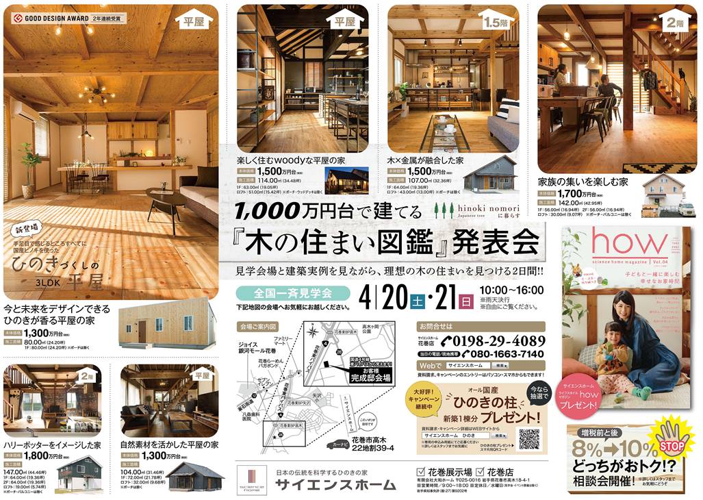 2019年04月17日 ★ 完成見学会のご案内 ★ サイエンスホーム体感見学会を開催いたします 2019年4月20日(土) ・ 21日(日) の2日間10時~16時まで花巻市高木22-39-4 にてサイエンスホームの木のおうちを 是非ご体感くださいませ ♪