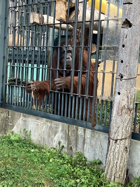 チンパンジ-のいる建物はク-ラ-が入っててベンチもあり
