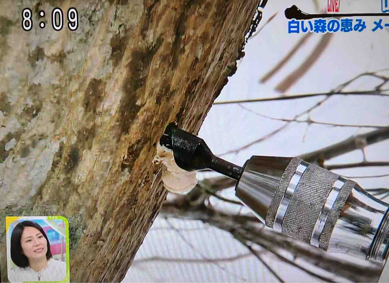 カナダ産はハードメープル(サトウカエデ)から作られますが、国産は東北地方のイタヤカエデから採れます。どちらも幹に穴を開けてメープルサップ(樹液)を集め、それを煮詰めたモノがメープルシロップになります。