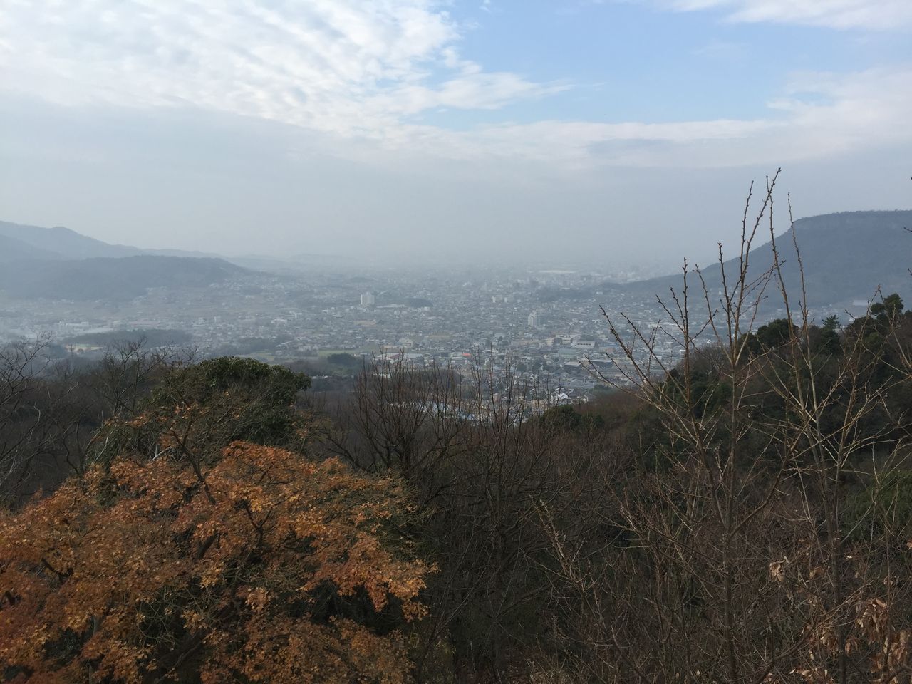 登山道から歩きで登ります。奥に見えているのが五剣山。