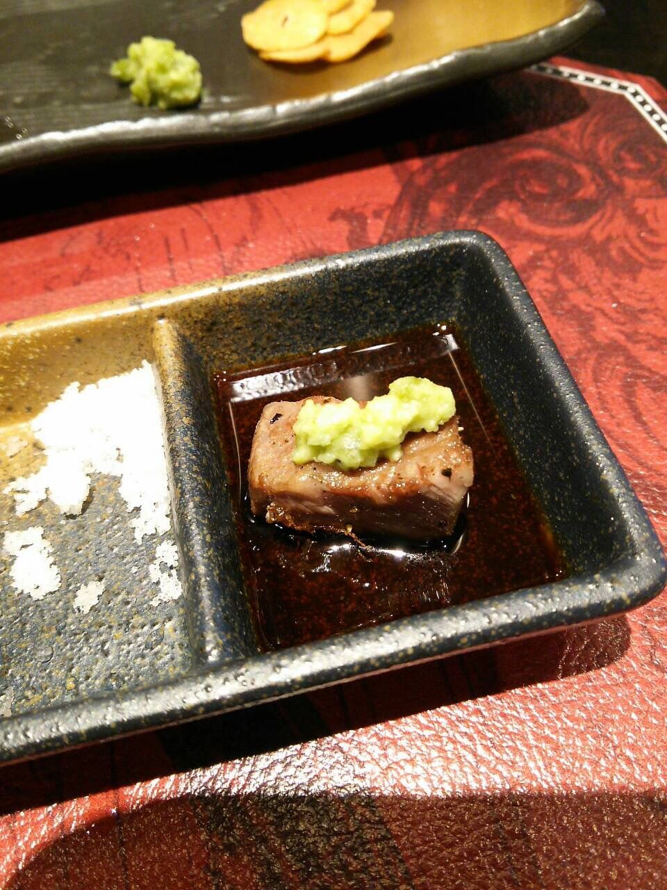 2016年03月07日 神戸ぎゅーー! こんにちは。四国営業所のカリスマ、溝渕です。先日、お休みに神戸に出掛けてきました。鉄板焼きにて神戸牛を初体験してきました。A5ランクの最高級のお肉との事です。部位についてはおしりの方のお肉との事ですがよく分かりません。とにかくおいしいとしか表現のしようがないです。食べながら涎がでる感じです。そして何だかちょっとおしゃれです。田舎者が来るとこじゃない感じです(^^ゞすりおろしたわさびを乗せて・・・いつものエバラさんじゃないです。廻りに居る人すべてがセレブに見えるのは気のせいでしょうか・・・汗まぁ次に行けるのは10年後でしょうね! 笑
