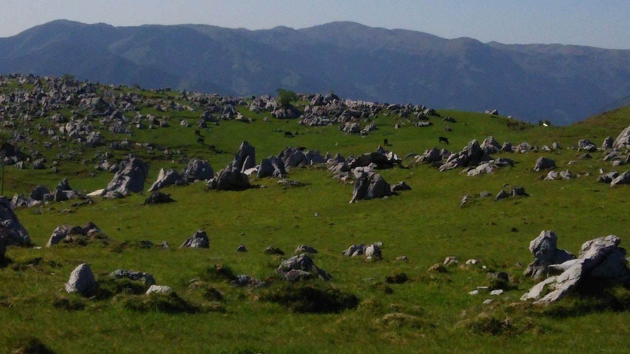 2016年07月20日 四国カルスト 四国地方、先日梅雨明けして毎日猛暑日が続いております。ということで、今日は少しでも涼しい自然スポットを・・・愛媛県と高知県の県境にまたがる、日本三大カルストの一つ 四国カルストです。 (ちなみに、あと二つは山口県の秋吉台と福岡県の平尾台です)標高は約1,400m 東西25Kmに広がっています。見えにくいですが、乳牛が放牧されています。のんびりと草を食べていますよ~所々に露出した石灰岩が見えていて、とても四国とは思えない風景が広がっています。一番東に位置する天狗高原では森林セラピーロードに認定された遊歩道があるそうです。暑い毎日・・・のんびり森林浴をしながら、日頃の疲れを癒したいですね~