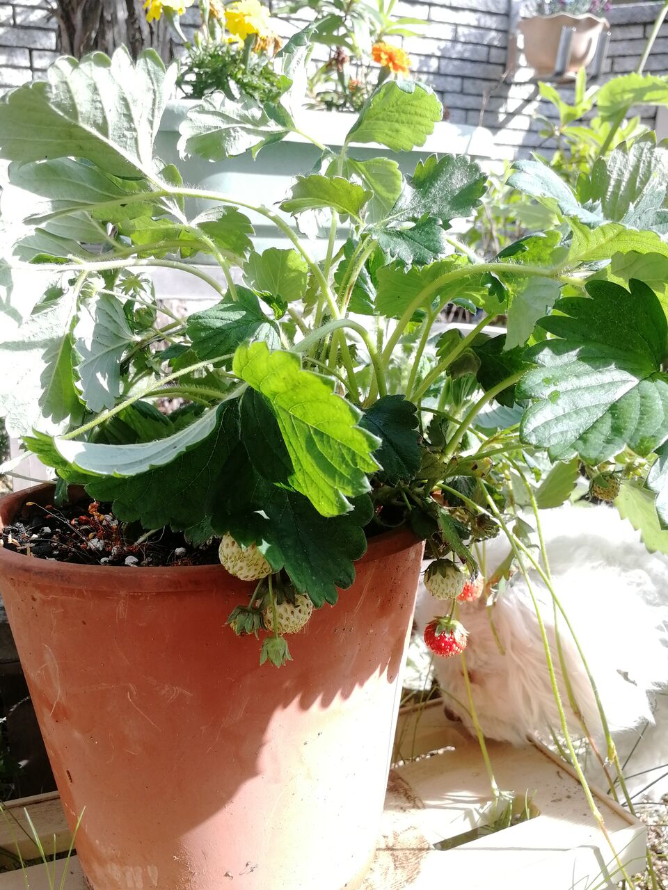 2020年05月15日 いつのまにやら 五月なのに暖かくなって過ごしやすくなってきましたね。コロナウィルスもこのまま収束してほしいですね、正木です。先月、年度始まりに何か育ててみようかなとイチゴを買っていたのですがこんな感じで、一季なりは食べる目的で育てたことはあったのですが、今回は眺める用にと四季なりを、さてどうなるかと一か月程様子を見てみると小さいですが実を付けていました。やっぱり同じイチゴだなあと少し感心してやっぱり出来たら食べてやろうと思うのでした。