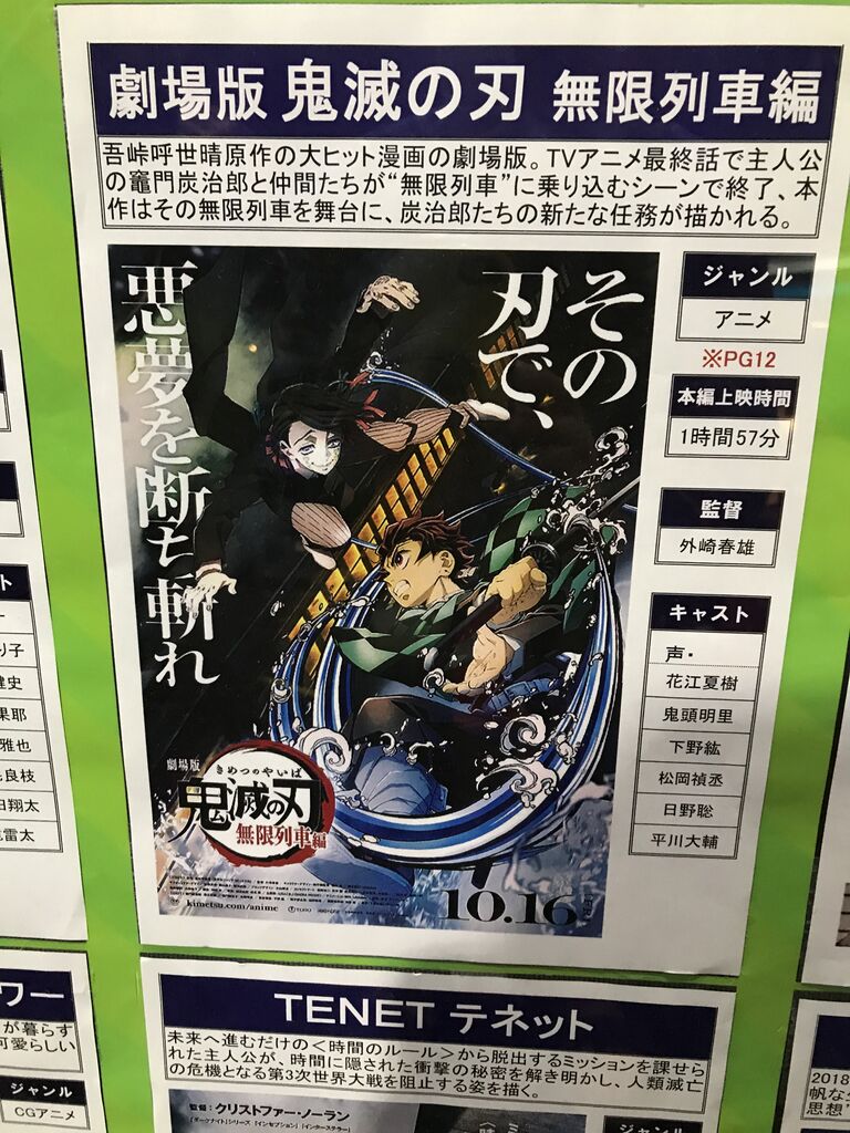 社会現象にもなった「鬼滅の刃」の映画を見に行ってきました