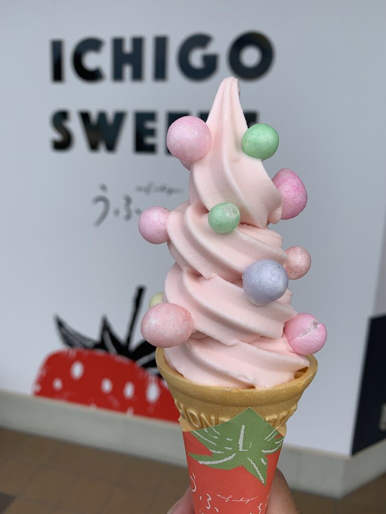 2021年10月11日 いちごスイーツ 今年の春、近くの道の駅がリニューアル。いちごスイーツの専門店が出来ました!お目当てのいちご大福は売り切れ。。なので、いちごソフトを注文。香川の郷土菓子、カラフルな「おいり」をトッピングおいりを食べたの・・25年ぶりぐらい!?久々に食べるとおいしい!!ウン十年前は結婚式の引き出物の定番だったけど、最近はスーパーで見るぐらいかなぁ。。わざわざ袋入りを買ってまでは食べようと思わないいちごソフトより「おいり」の懐かしさに感動でした^^
