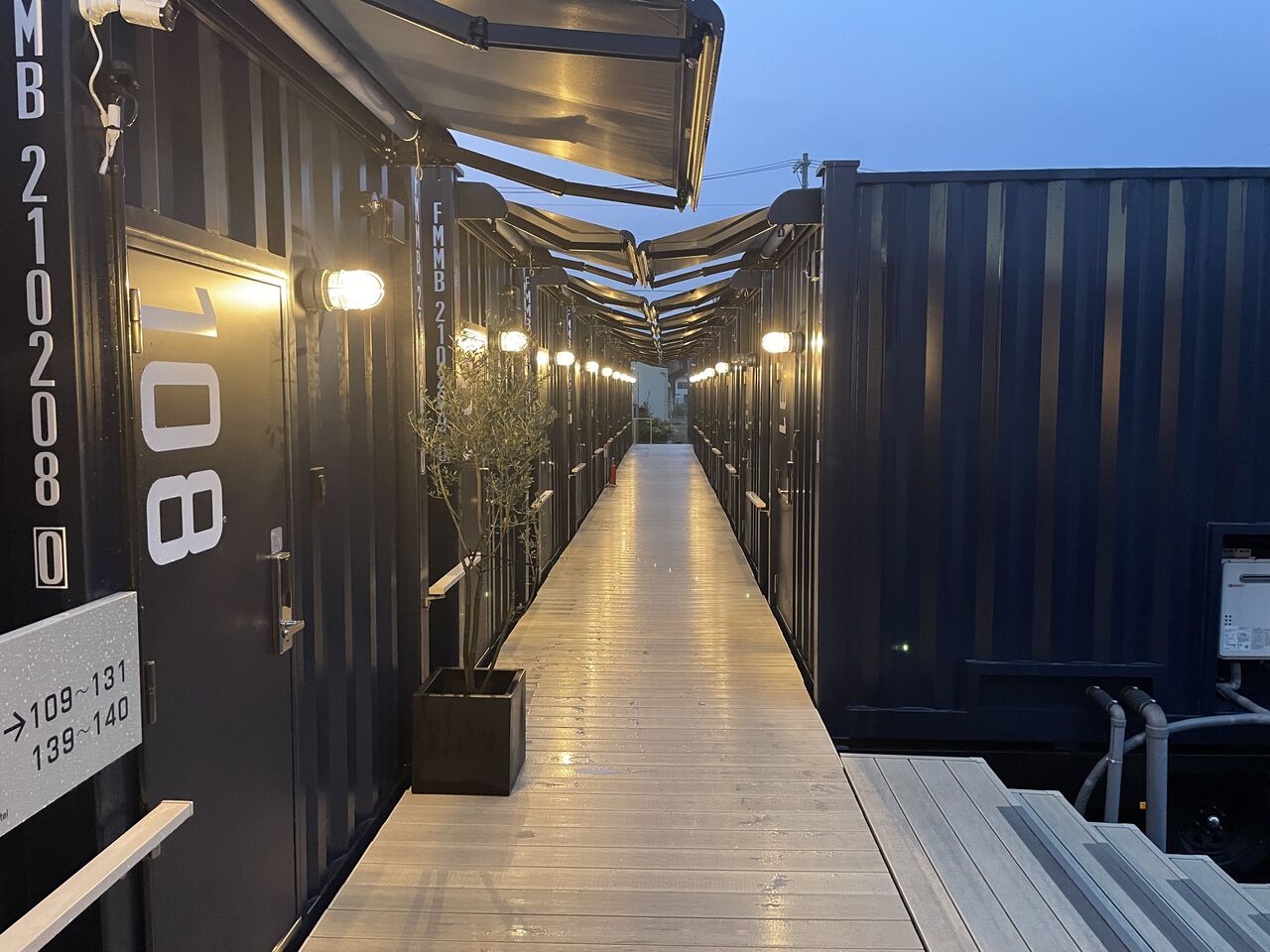 コンテナが整列して並んでおり、色も青で統一されておりと、