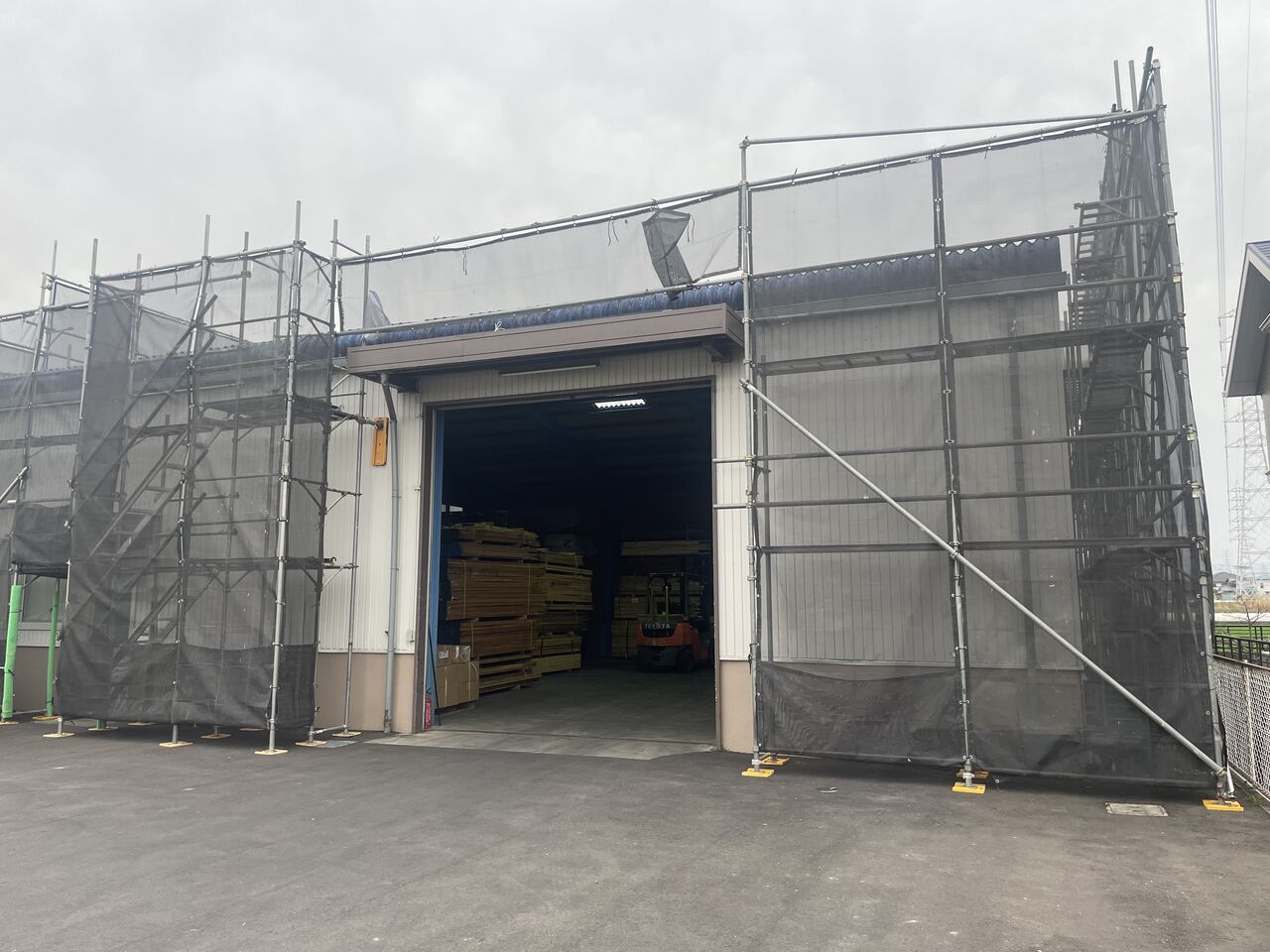 少しの間は足場が組まれ、材料の入出庫時には少し不便な事もありましたが、