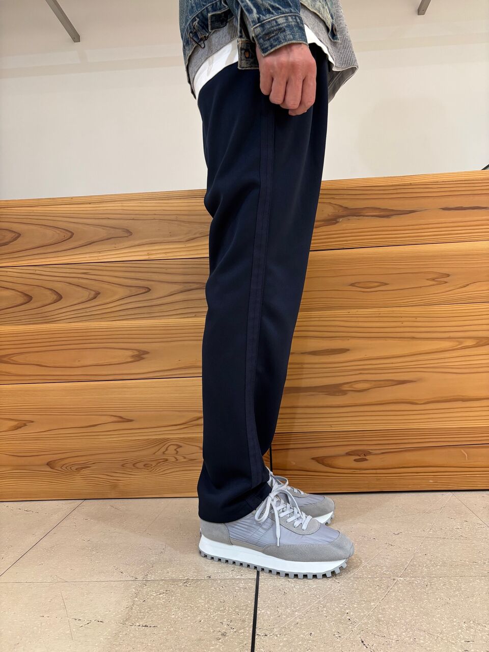 サイドに入る同色のラインが特徴的なデザインで、スポーティながらタックが入ることで洗練されたシルエットに仕上げているのも特徴です。