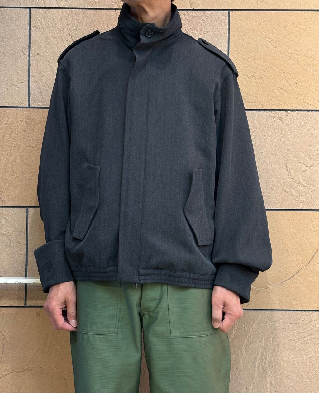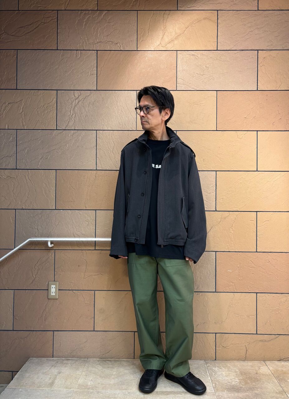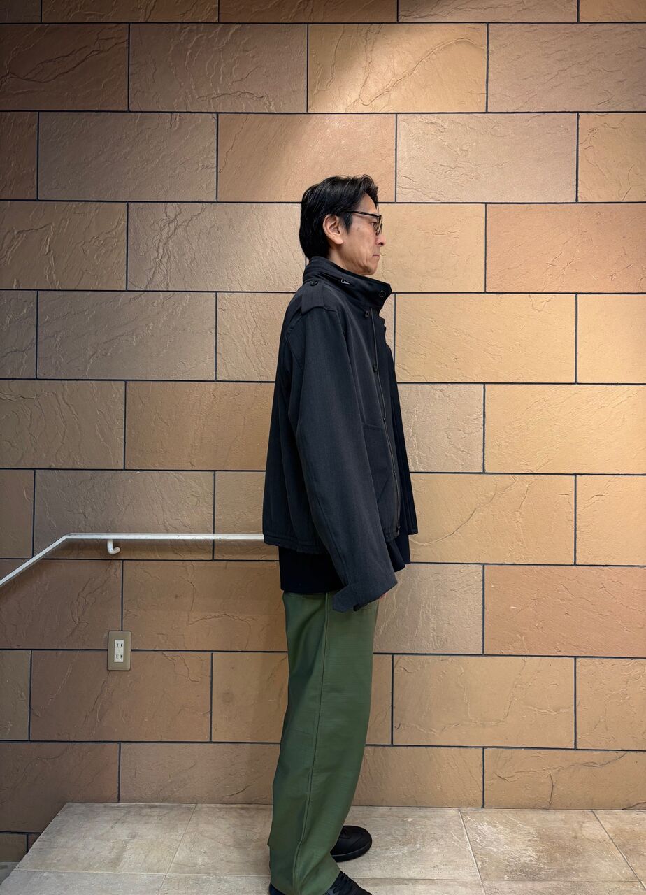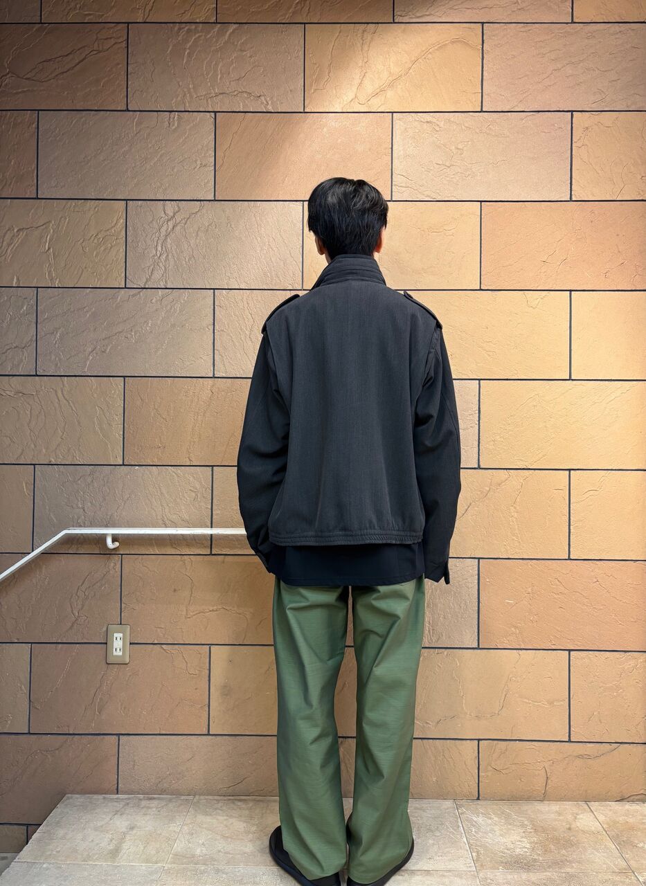 衿や肩章、袖口等の象徴的なディテールを活かしながら、本来ミリタリ ージャケットの持つ無骨さを払拭し、タウンユースに相応しい洗練され た印象に仕上げています。