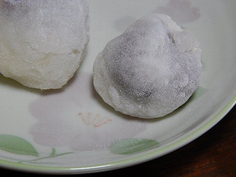 甘い匂いの後からテーブルに盛られたいびつな形の大福らしきもの・・・・。