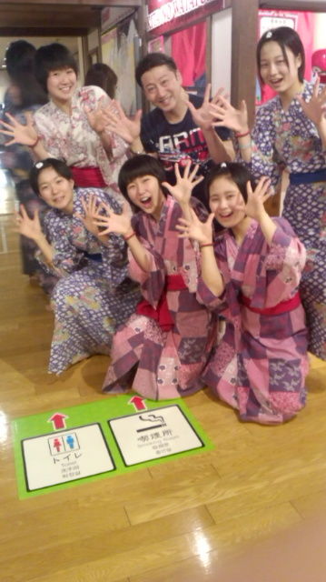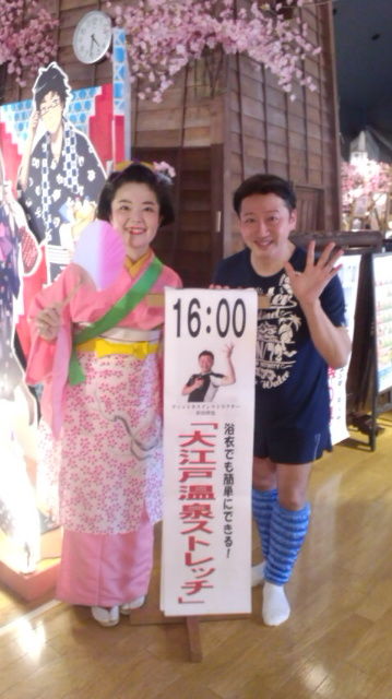 大江戸温泉物語で『大江戸温泉ストレッチ』浴衣を着たままでも簡単に出来る楽しいストレッチタイムです!!