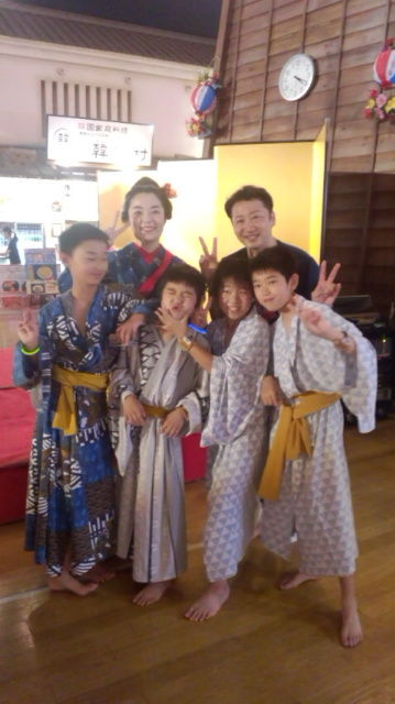 大江戸温泉物語で『大江戸温泉ストレッチ』浴衣を着たままでも簡単に出来る楽しいストレッチタイムです!!