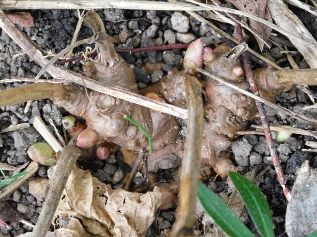 地下茎です。土が硬いせいか露出しています。