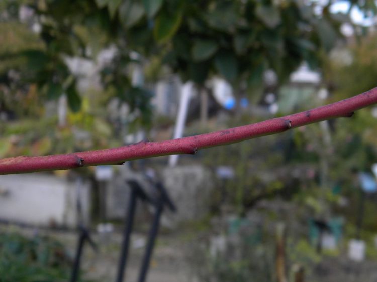 面倒な作業ですが、果樹類(+バラ)の落ち葉は病害の広がりを避けるため、