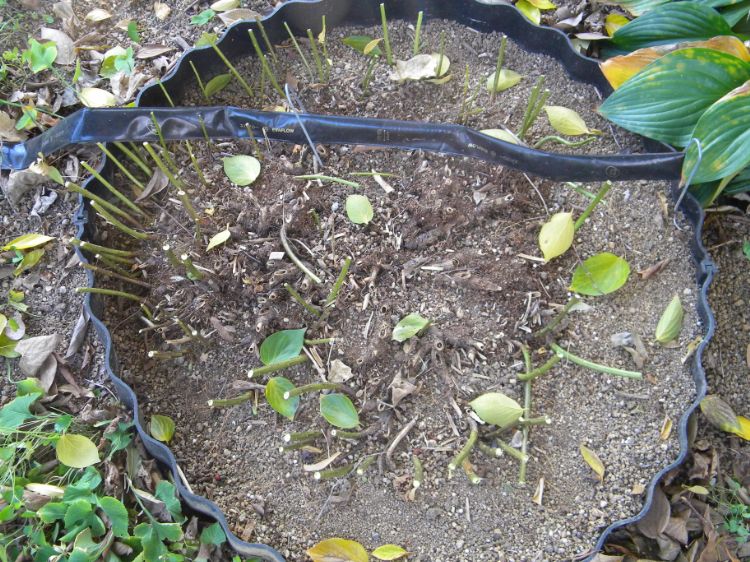 早めに切り取り、2か月くらいしてからつるを取り除きます。
