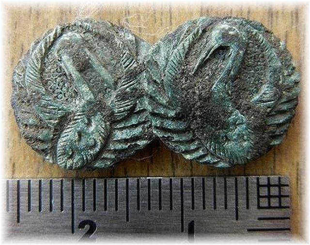 今回出土した刀装具は、鶴の丸紋を二つ並べたような形をしている。