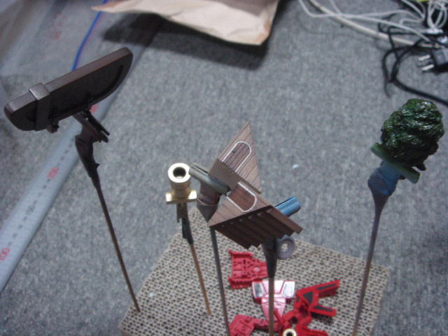 本体はシルバー塗装後、筆塗りにて迷彩塗装後、エアブラシで細ぶきでボケ足を表現。