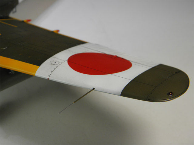 主翼の機関砲はピンバイスにて開口しピトー管は真鍮パイプと真鍮線に置き換え、エナメル線にて脚回りのブレーキパイプ追加工しております。