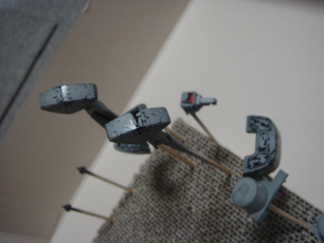 パーツ切り出し→ゲート処理→パーティングライン処理(一部スジボリ)→サフ吹き(チェック)→表面処理。