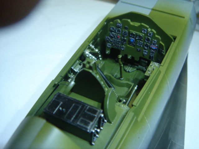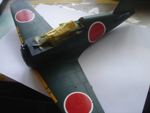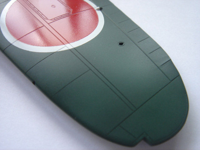 下地にミッドナイトブルー使用し下面はC35明灰白色、上面にC124暗緑色をパネルラインに陰が残るように塗装。