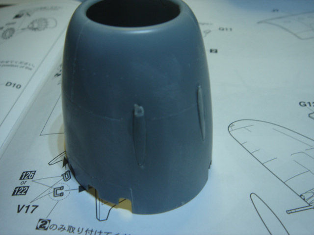 翼の厚みが気になったので接着前に全体的にケガキ、薄くしました。