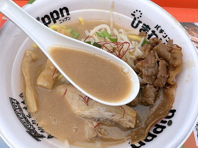 スープは濃厚な鶏白湯で旨味もしっかりで美味しい。イベントでこれだけしっかりとした鶏白湯なら、本店はかなり美味しいんでしょうね。