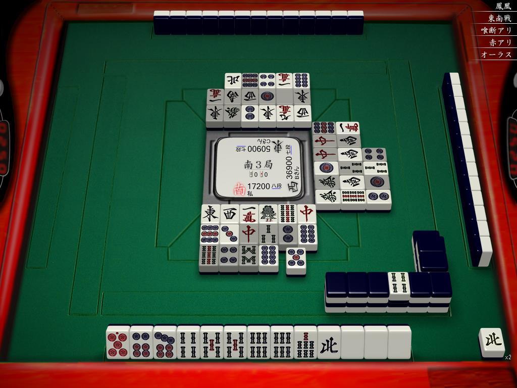 オーラス、両者から跳直以外の目がないのでツモ拒否しつつ待ちを転がしてたら最終ツモで北を持ってきます。