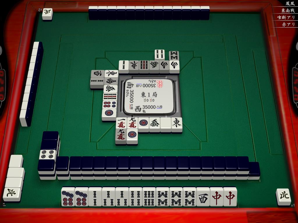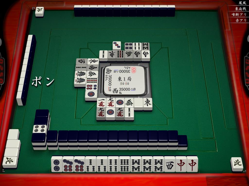 1sのトイツ落としが入りました。端牌トイツはかなりいいターツなので最低でも整ったシャンテンくらいは入ってそうです。相変わらず対面は4pをプッシュしています。