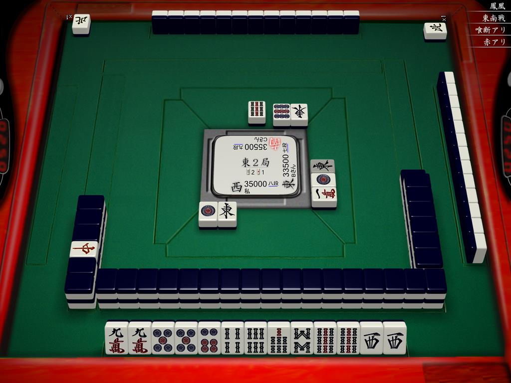 親が押していることに気づいていたのにもかかわらず、上家の仕掛けに2pはまず当たらないからと、甘えて西を自己都合で保留してしまったわけです。当然のように親に刺さり・・・