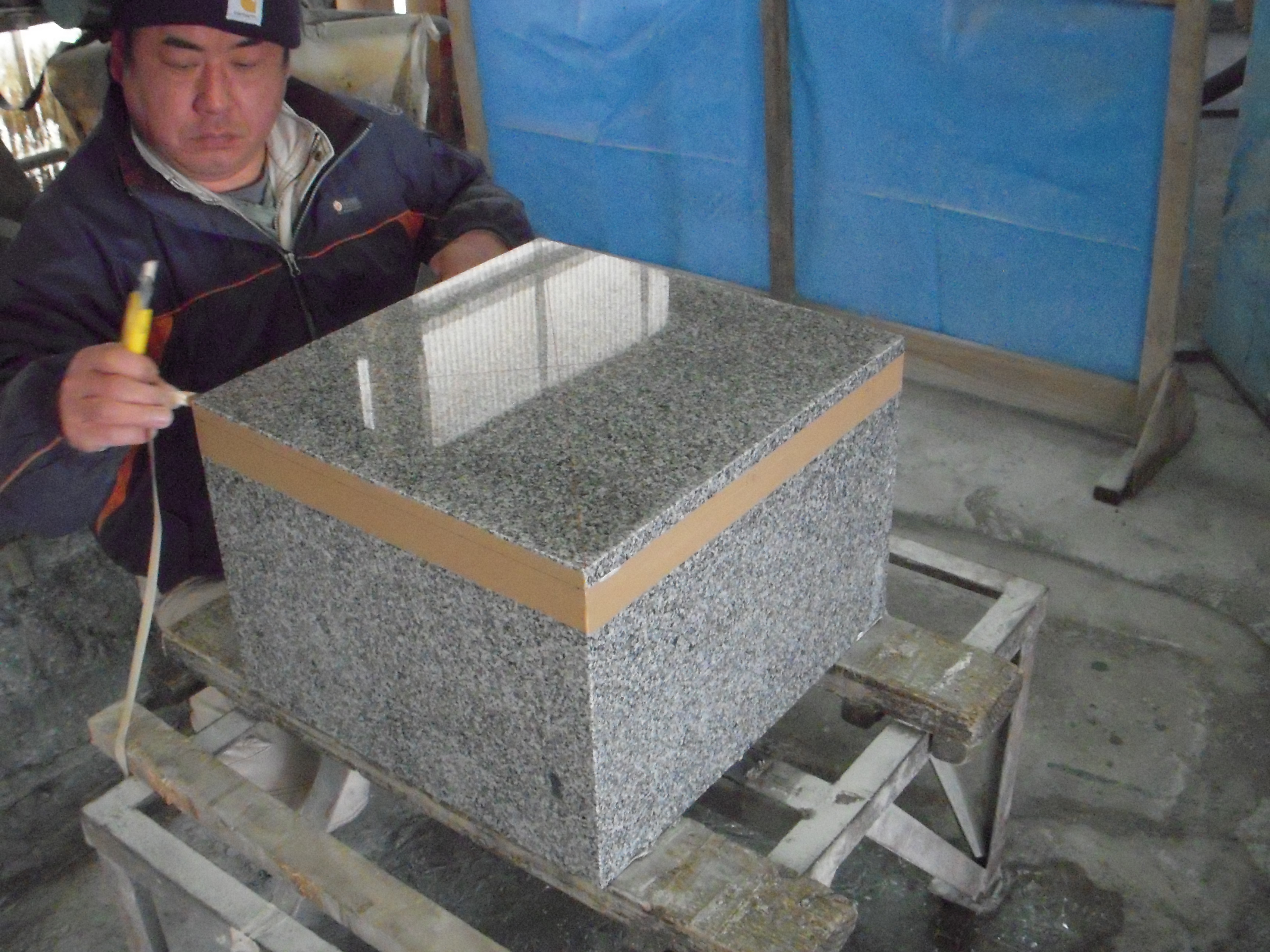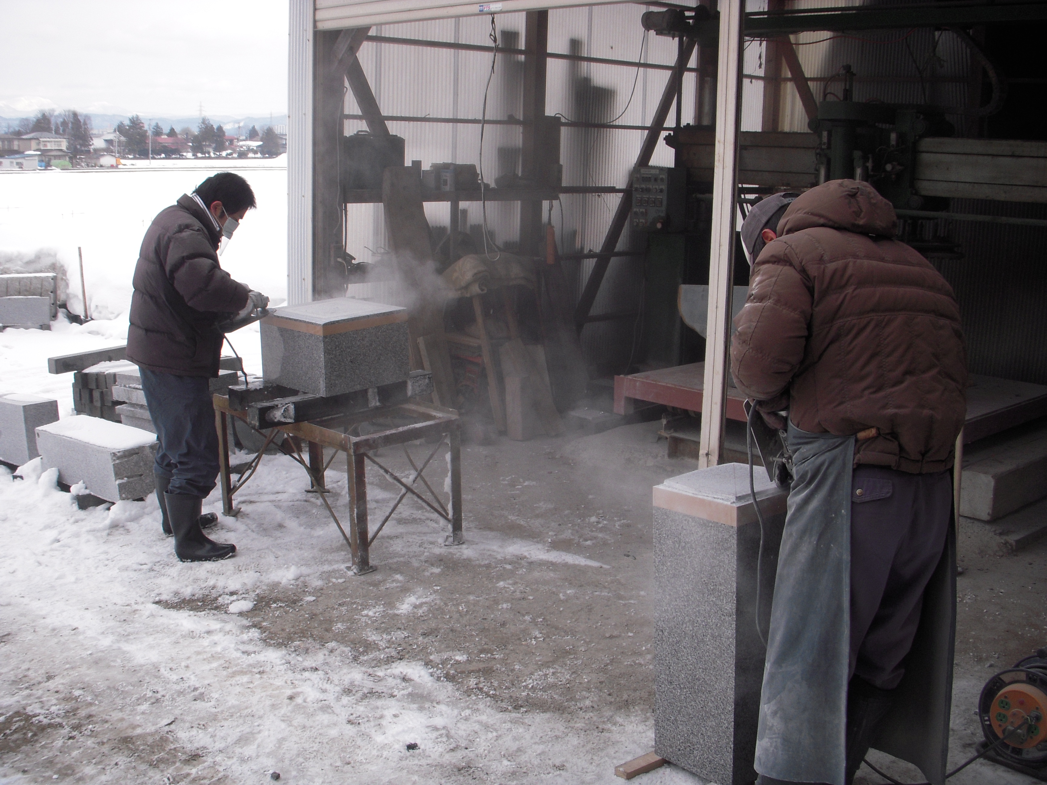 2010年02月24日 池産地消 現在春の43周年感謝祭に向けて岩手の名石玉山(姫神小桜)石を当社工場で加工中 岩手に生まれたらやっぱりお墓も岩手の石で決まりでしょう。近日当社展示場に出展しますのでご自身の目で実物をご確認下さい。