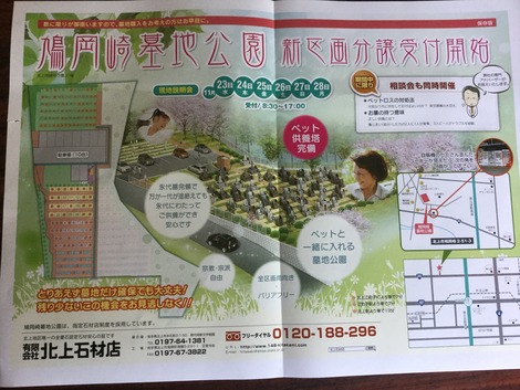 2016年11月21日 ペットロスの対処法 23日水曜(祝)から28日月曜日まで 鳩岡崎墓地公園(北上市鳩岡崎2-51-3)にて 墓地分譲受付&ペットロスの相談会を開催いたします。 時間は、8時30分から17時まで ご興味のある方は しつこい営業行為は致しませんので お気軽にお越しください。 詳しくは、本日の折り込みチラシをご覧ください。