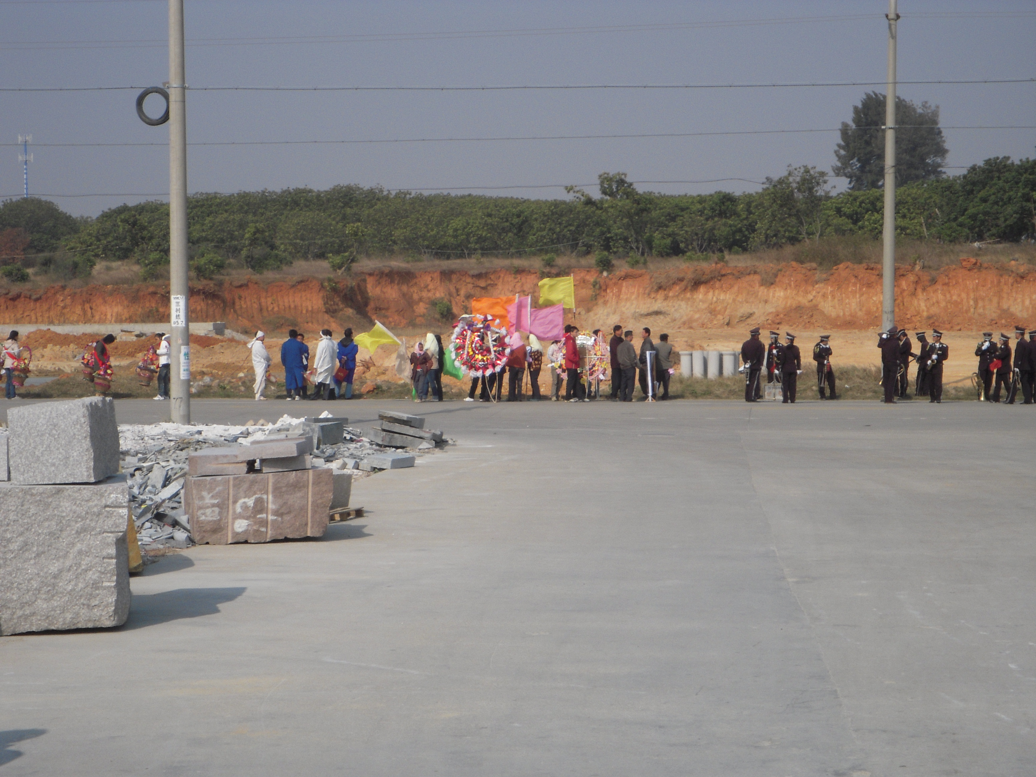 2009年07月02日 中国のお葬式 この画像は結婚式ではございませんなんと中国のお葬式の風景なのです。綺麗な花輪を持ち歩きマーチングバンドがトランペットを鳴らしとても楽しそうなお葬式風景です。偶然出張中に見ることが出来たので写真に収めてしまいました。あらためて死に対する考え方が人・国それぞれなんだな〜と想いいろんな意味で勉強になったひと時でした。
