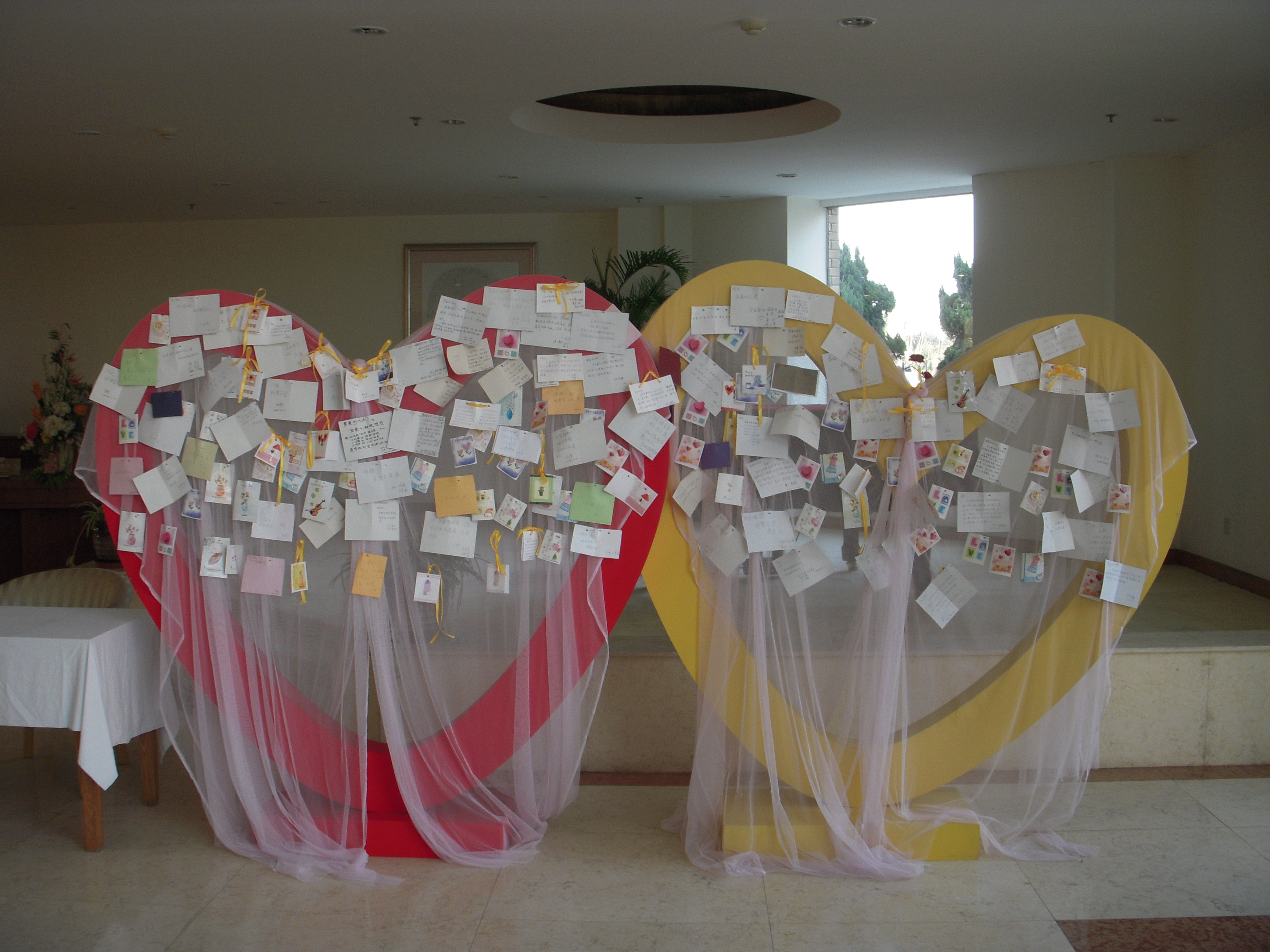 2009年03月21日 世界の石・お墓のお知らせ part1 この画像は結婚式ではございません中国、福寿園のお葬式です霊園施設内のロビーに飾られております葬式の参列者が故人に対してのいろいろな感謝の言葉や悪口を書いています住む国は違えど故人をしのぶ心は同じなんだなと想い今後の私のお墓つくりに大変勉強になったひと時でした。
