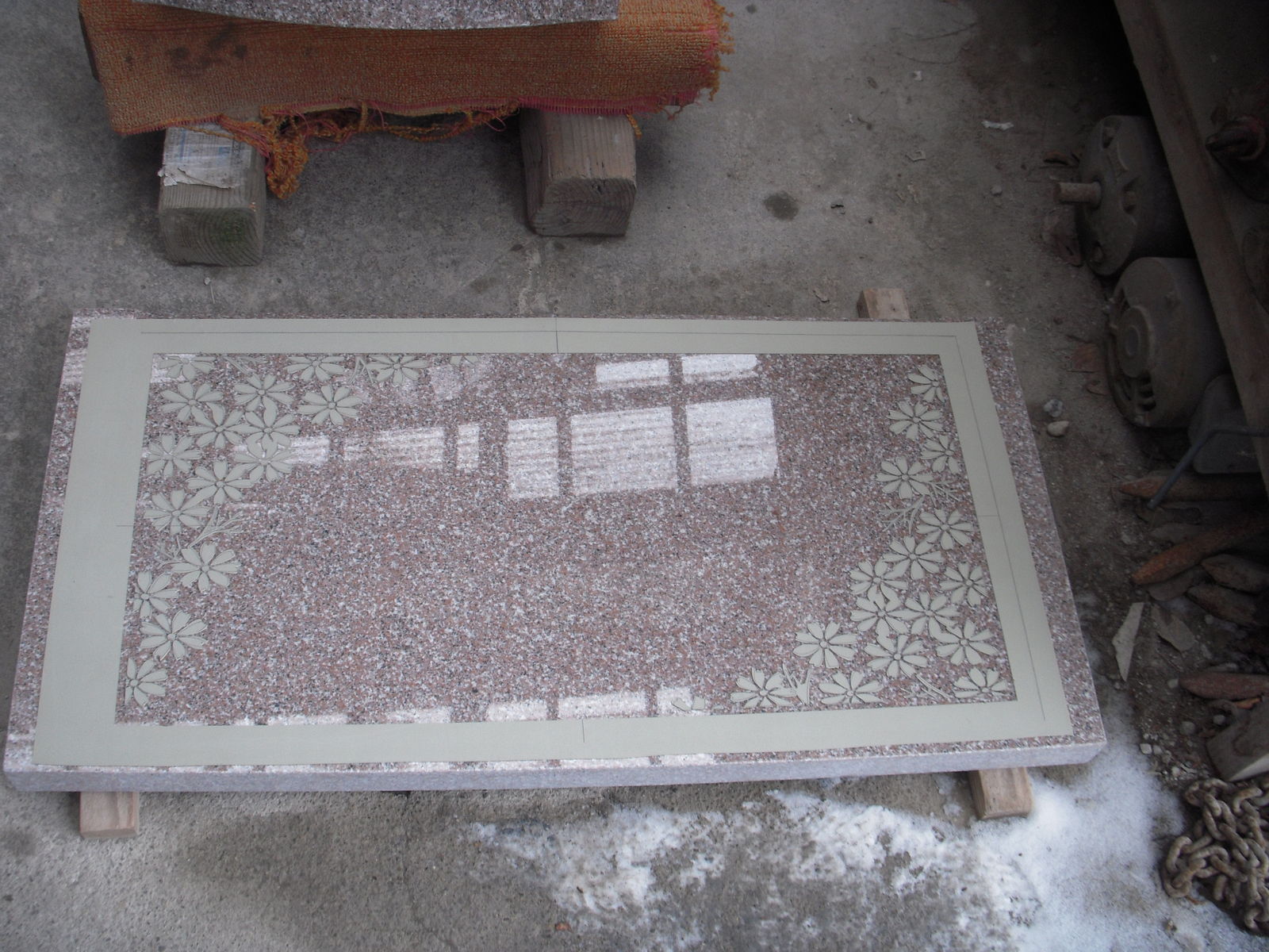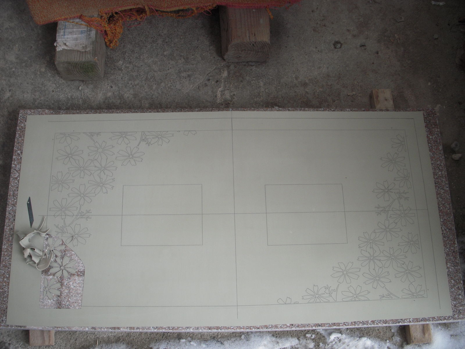 2013年03月08日 お墓は人生のラブレターです。 只今北上石材加工場にて製作中のO家さまオーダーメードフロア滑り止め彫刻加工のご紹介お客様と何度となく話し合った上で決定した お花コスモスの型取り加工↓切り取り完了↓彫刻完成↓北上石材店はこのようなオーダーメード彫刻を得意としております。自社工場にて原案作成・加工・彫刻しておりますので完成納期ギリギリまでお施主さまの想いをお聞きしカタチにする事が可能です。大切なあの人・自分の想いをカタチにしてみたいとお考えの方は相談・提案は無料で、しつこい営業行為は致しません。今すぐ建墓予定がなくても遠慮なく、kitaseki@atlas.plala.or.jp か北上石材フリーダイヤル0120‐188296担当伊藤までどうぞお気軽にご相談してみて下さい。O家様完成まで今しばらくお待ち下さいませ。