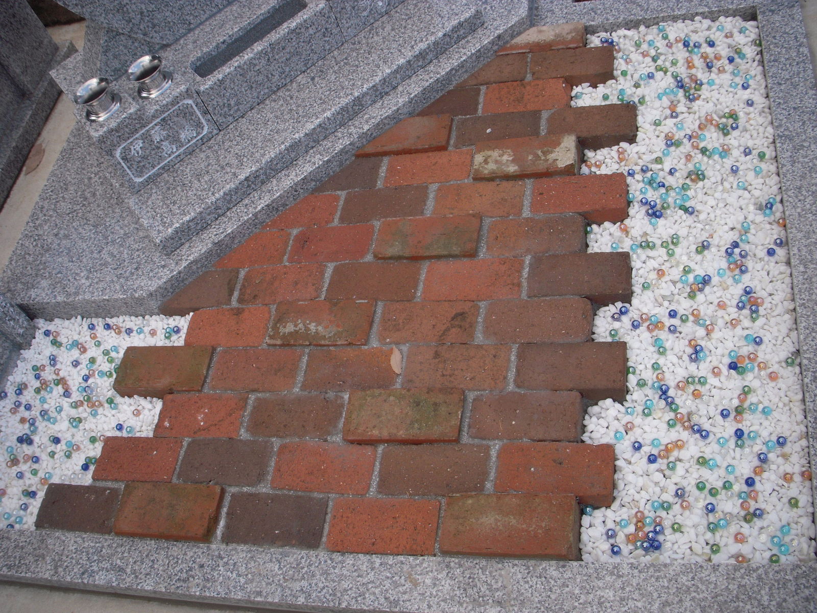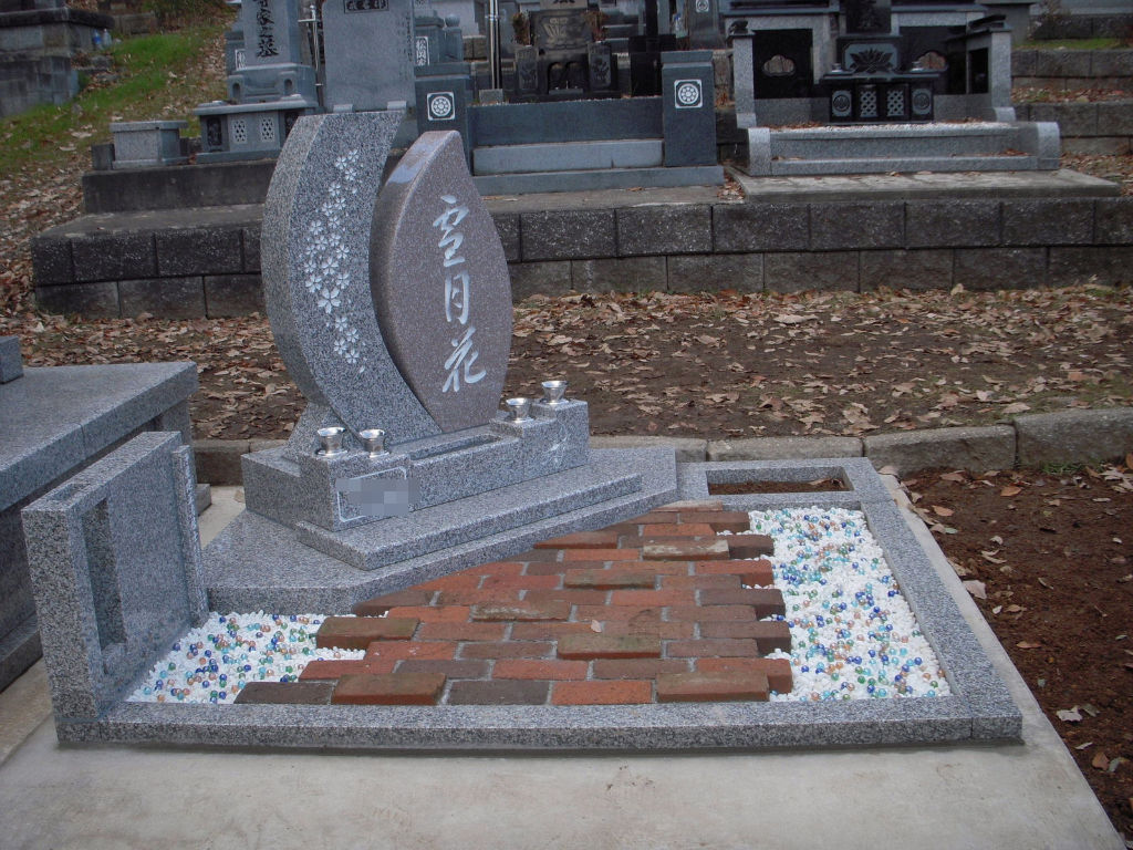 2012年12月07日 流鏑馬 こちらのI家さんのお墓の石塔はご夫婦の共通の趣味だったダンスを石で表現するように踊っている人の曲線をイメージ白を男性 ピンクを女性に見立ててお作り致しました。表文字の雪月花は御施主さんが書かれた世界に二つとない彫刻香炉部分には故人がこよなく愛した流鏑馬をさりげなくワンポイント彫刻フロア部分に使われているレンガの一部分は建築家だった旦那さんが作った自宅の暖炉に使用していたレンガを使用しそのレンガを際立たせるために両サイドをビー玉でキレイに演出いたしました。このような想いのこもったお墓つくりのお手伝いをさせて頂いたことを北上石材店は心から感謝申し上げます。
