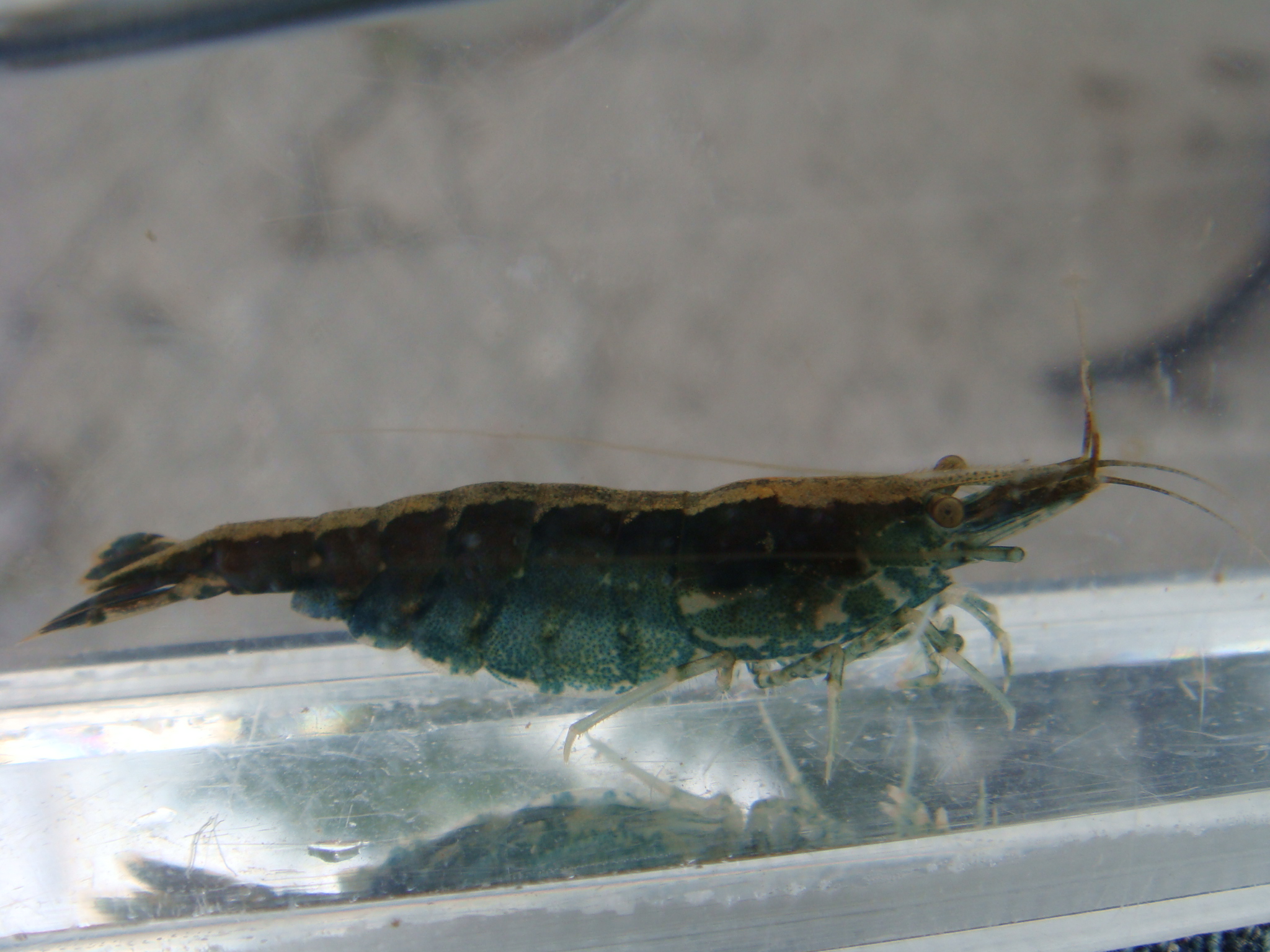 それからミナミヌマエビのブルー固体。いい色してますね〜。お持ち帰りしましたが、まだ色を保っています。