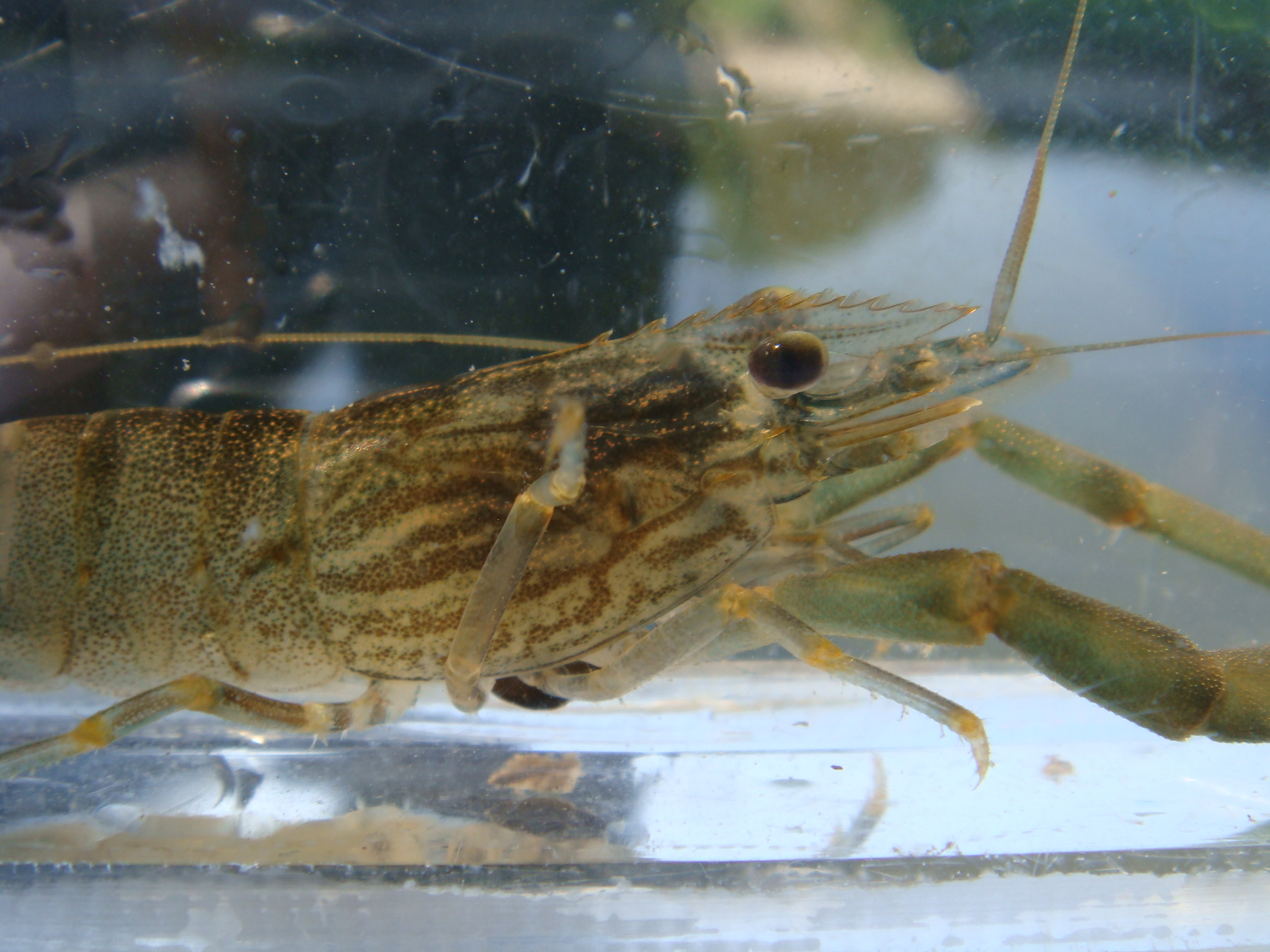 左がテナガエビ、右がヒラテテナガエビ。他にスジエビも含めて大漁でした。