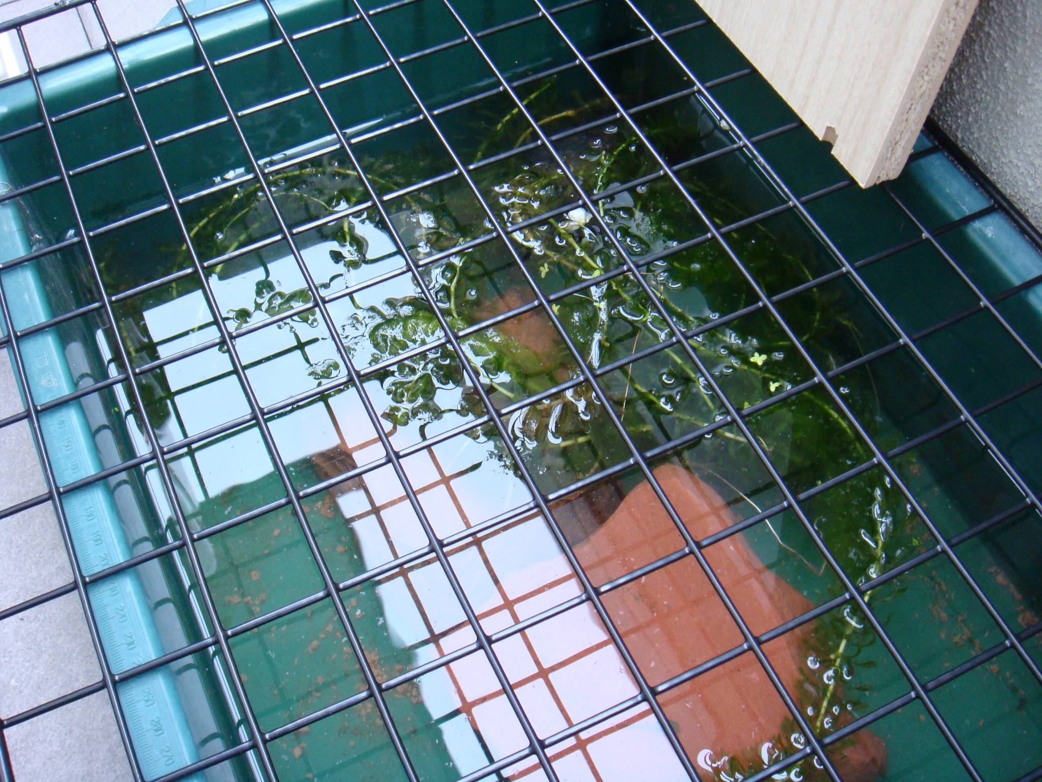 水草は、メダカ水槽から持ってきたようですが、どうも見ているとメダカの稚魚らしきものがチラホラと。。