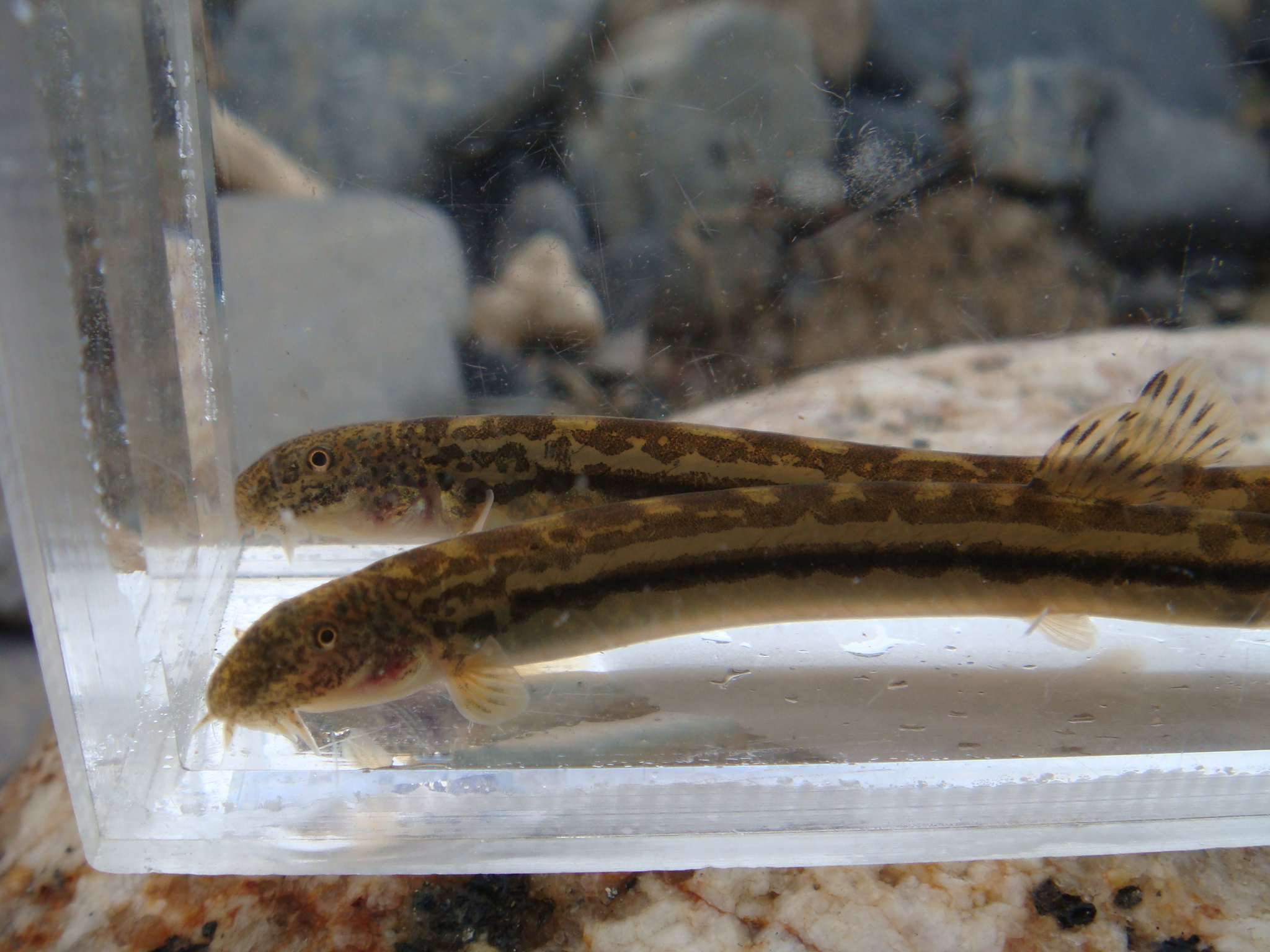 右がカワムツです。カワムツが優先魚種で多い印象でしたが、採集個体数ではアジメドジョウの方が多かったです。捕まえやすさの問題でしょうか。