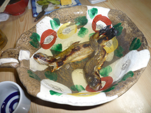 イワナを軽く焼いて大吟醸の中で泳がせて、さてと