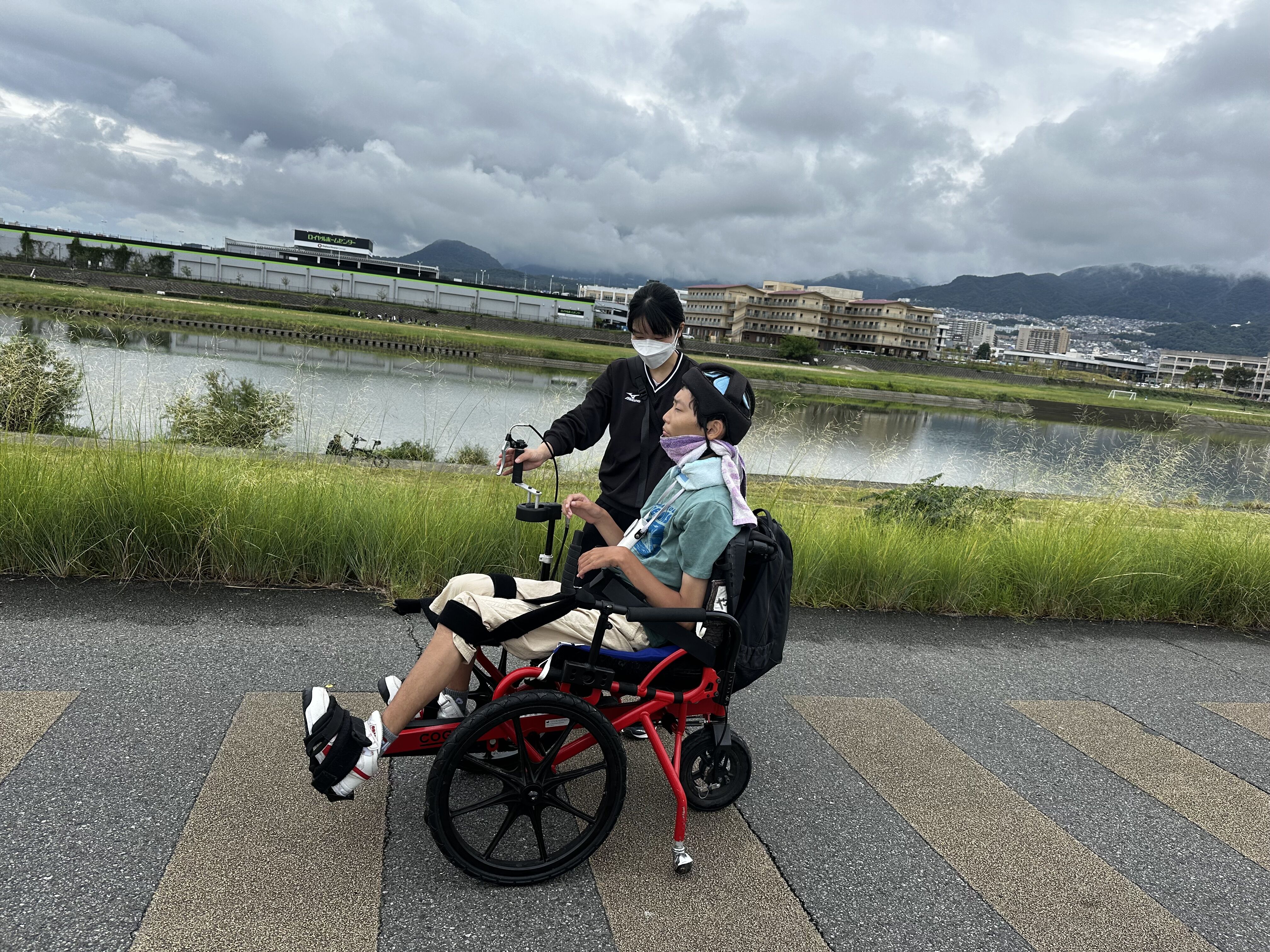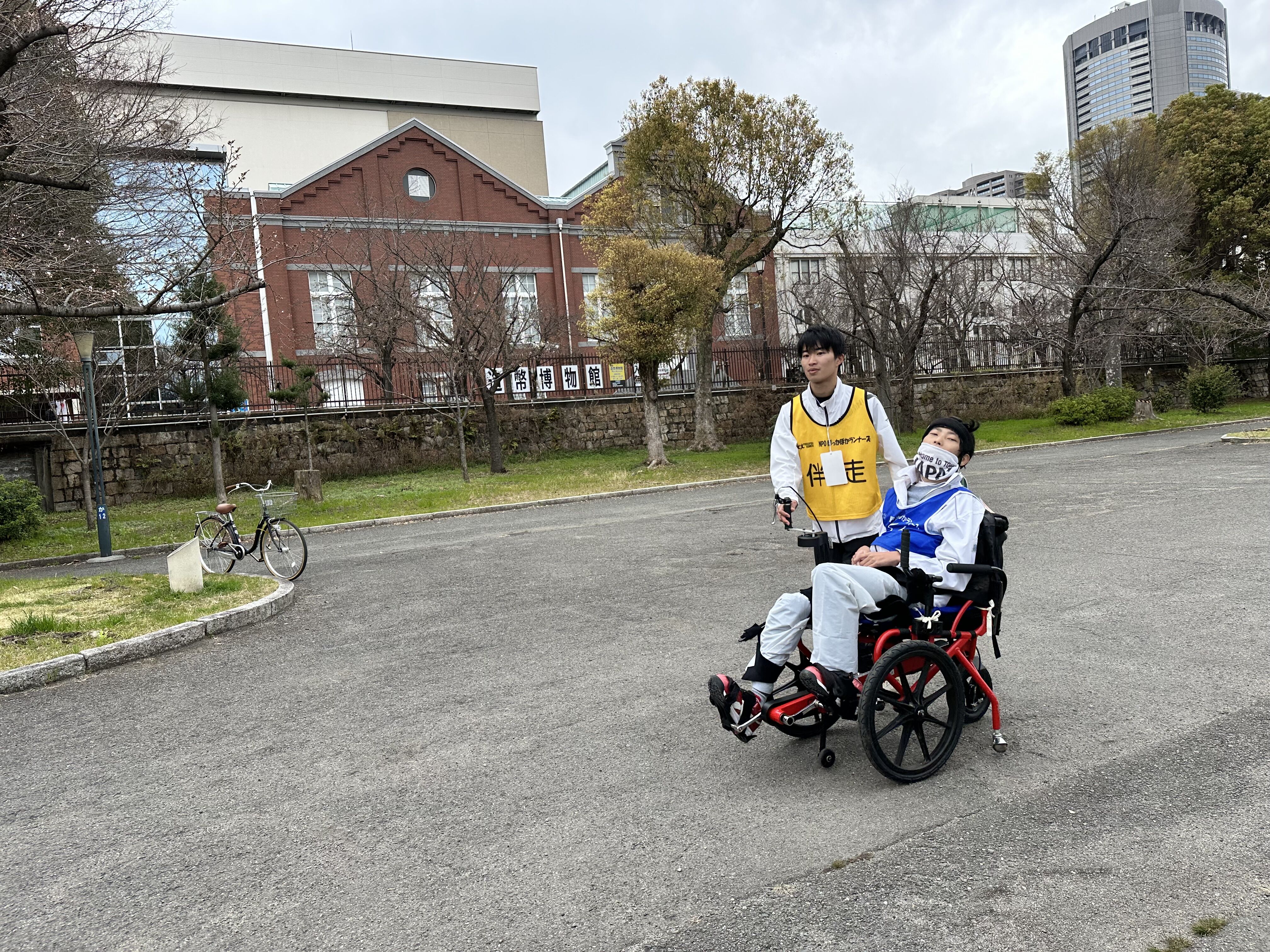 車イス大丈夫と聞いていたのですが、2回階段に阻まれ、足こぎから降りて、運んでいただいたり、スロープを通るために戻ったりはありましたが、2時間半くらいでゴールしました。