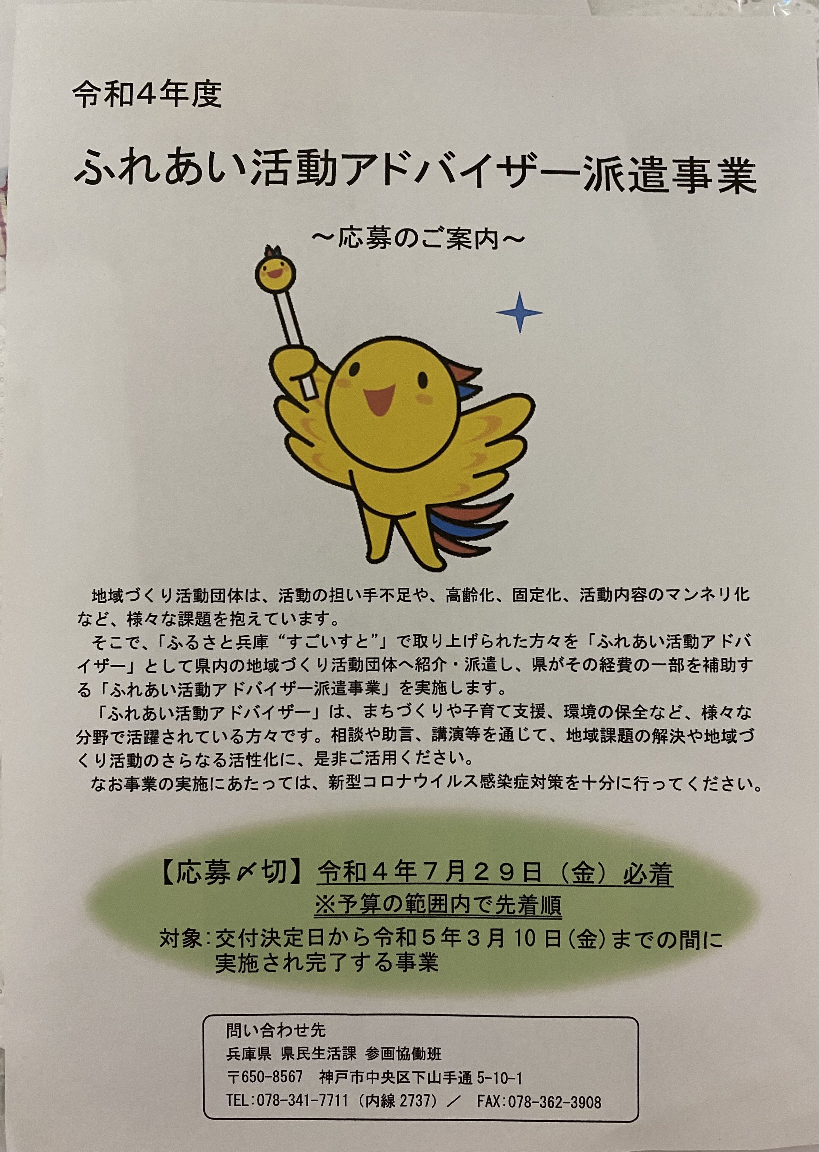 兵庫県限定ですが、私、ふれあい活動アドバイザーに任命されていまして、7月29日までに申し込んでいだだきますと、お話ししに行かせていただきます。費用は兵庫県が負担してくださいます。私でよければ、お申込みください。もちろん、私以外にもたくさんアドバイザーはおられるので、講師依頼を考えておられる方がありましたら、活用していただけたらと思います。
